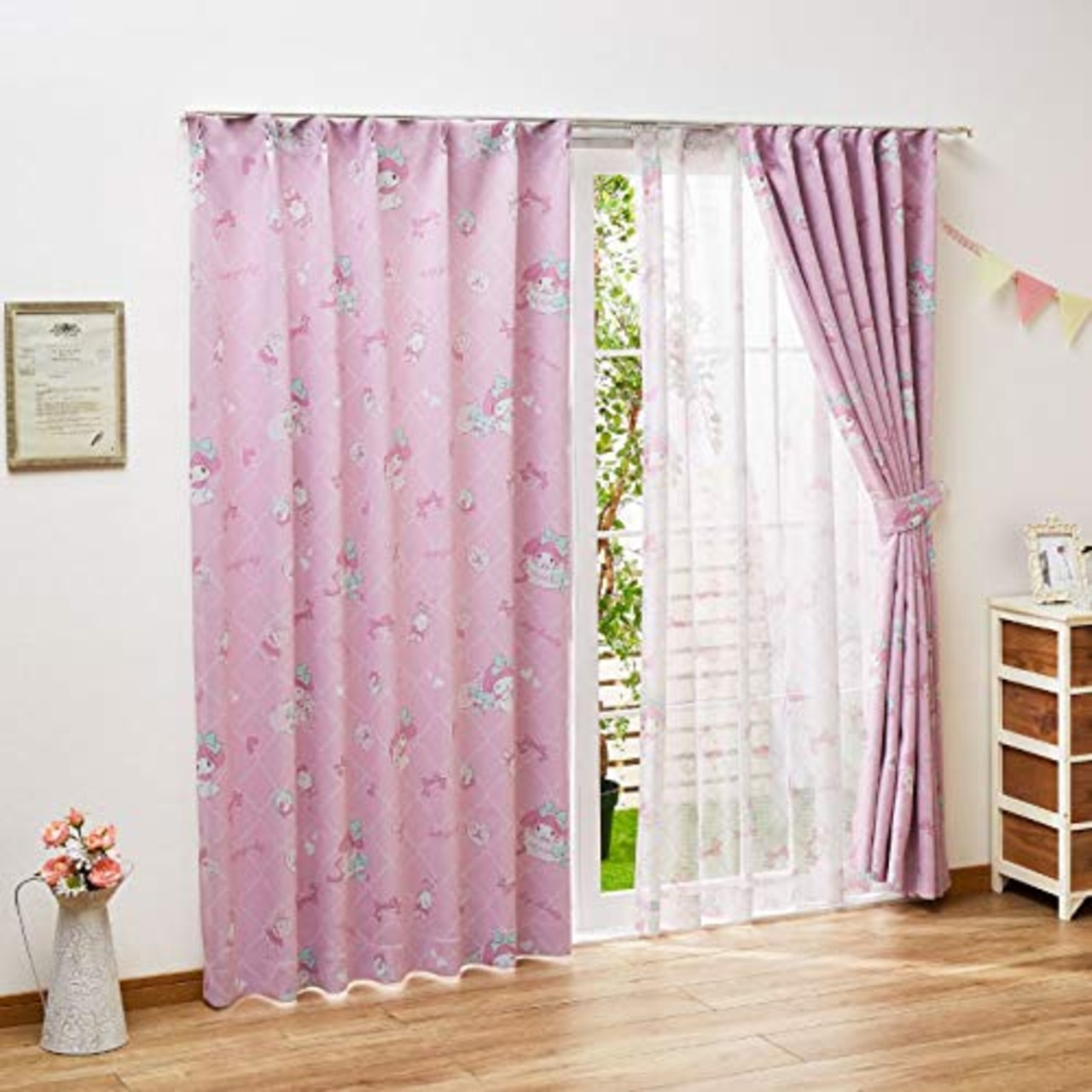 マイメロディのレースカーテンが新登場! ピンクとパステルグリーンの組み合わせが窓辺をおしゃれに彩ります。お揃いの遮光カーテンと合わせて更に華やかな窓に。