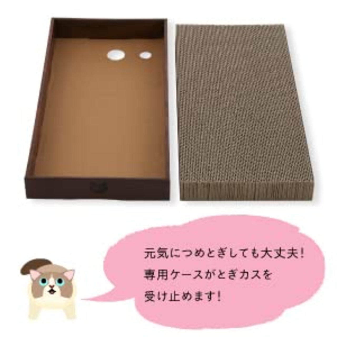 【専用ケース付きでお掃除らくらく】バリバリパッドはダンボール製の専用ケースがついています。 猫がつめとぎをした後にでるとぎカスも、ケースが受け止めてくれます。 とぎカスが飛び散ることがないので、お部屋に置いても、ケージ内で使っても、お掃除らくらくです。