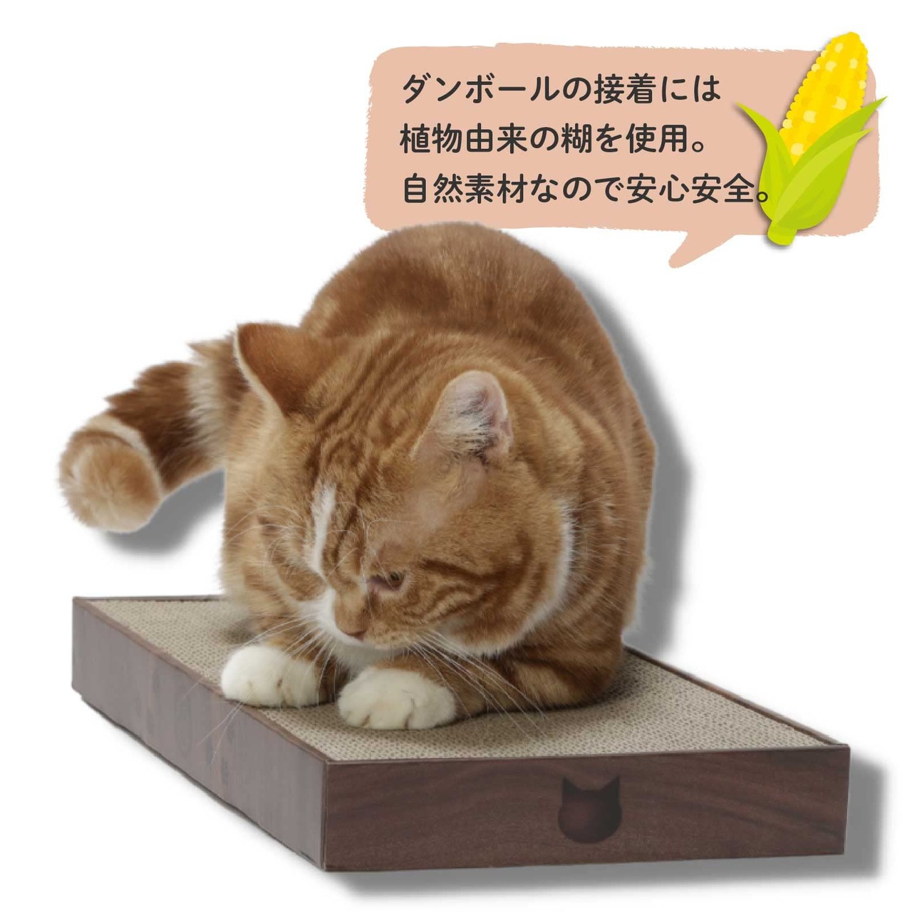 【こだわり抜いた原材料】つめとぎ部分に使用しているダンボールは、原料の100%が紙。 内10%はニュージーランド産原パルプ紙を使用。大切な猫に使用するつめとぎなので、品質にはとことんこだわりました。 ダンボールを貼り合わせる糊は植物由来の糊を使用しています。