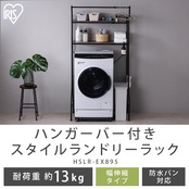 アイリスオーヤマ ランドリーラック 洗濯機ラック ハンガーバー付き幅伸縮タイプ(70~90cm) ホワイト デッドスペースを賢くおしゃれに活用 収納棚 隙間収納 メッシュ棚で伸ばしたときの落下防止 クロスバーでグラつき防止 幅約70~90×奥行約53×高さ約180 HSLR-EX895