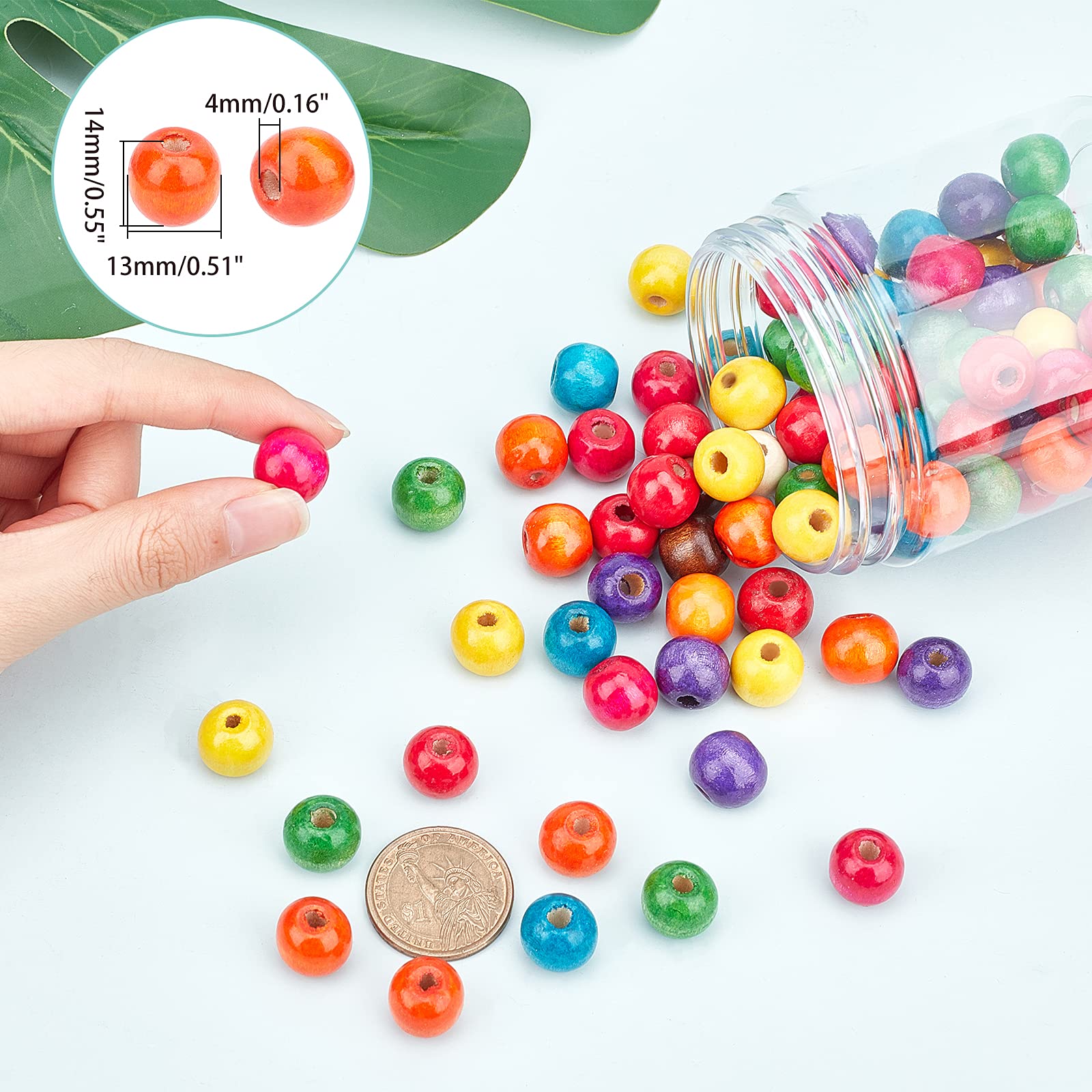 PH PandaHall 約100個 ミックス ウッドビーズ カラフル 丸型 ビーズ 手作り用品 DIY用 パーツ 混合色 14mm ハンドメイド アクセサリーパーツ