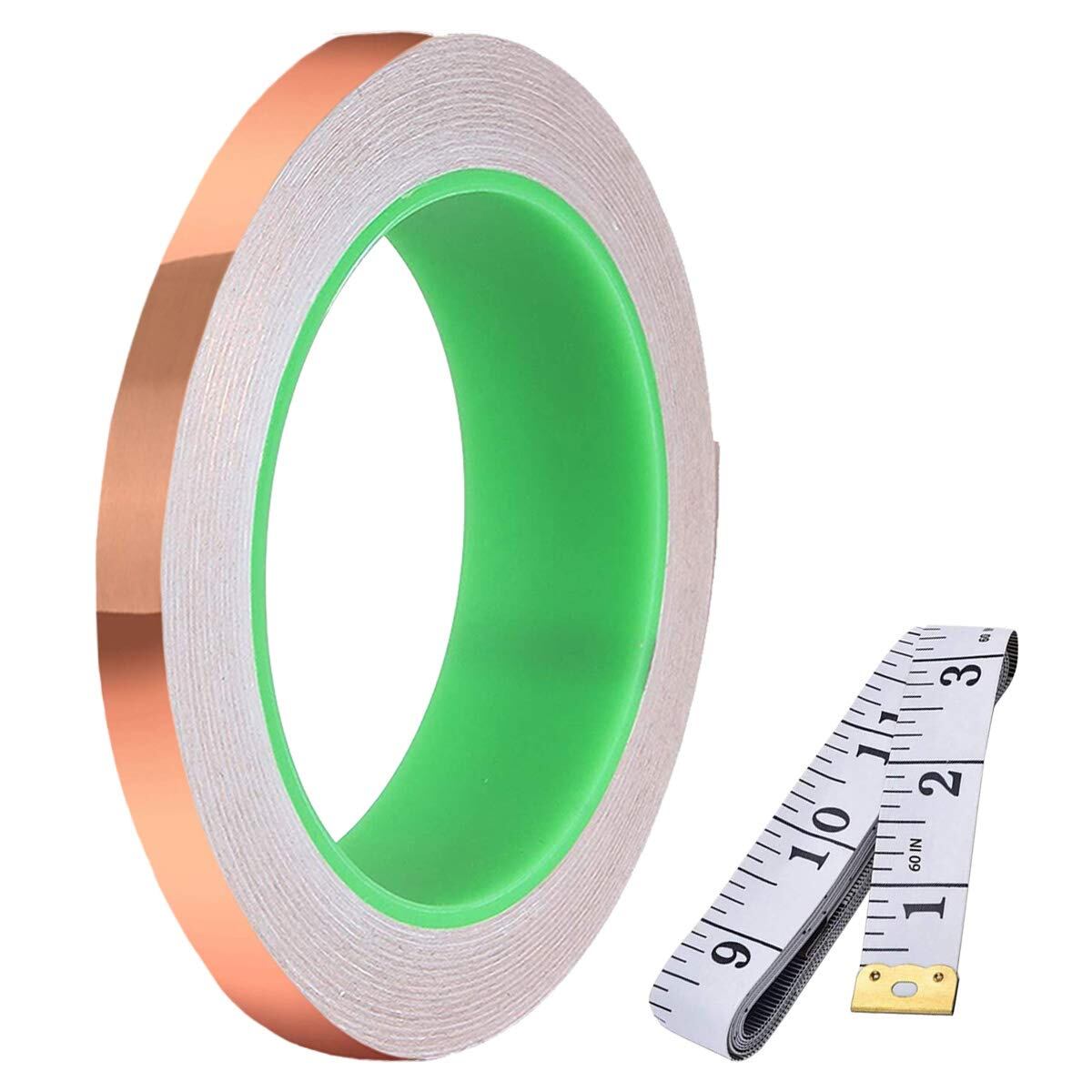 両面導電性銅箔テープ(5mm / 0.2inch x 30m / 98ft)ギターおよびEMIシールド用の厚さ0.05mm、電気修理、1.5m / 16ft測定テープによるはんだ付け