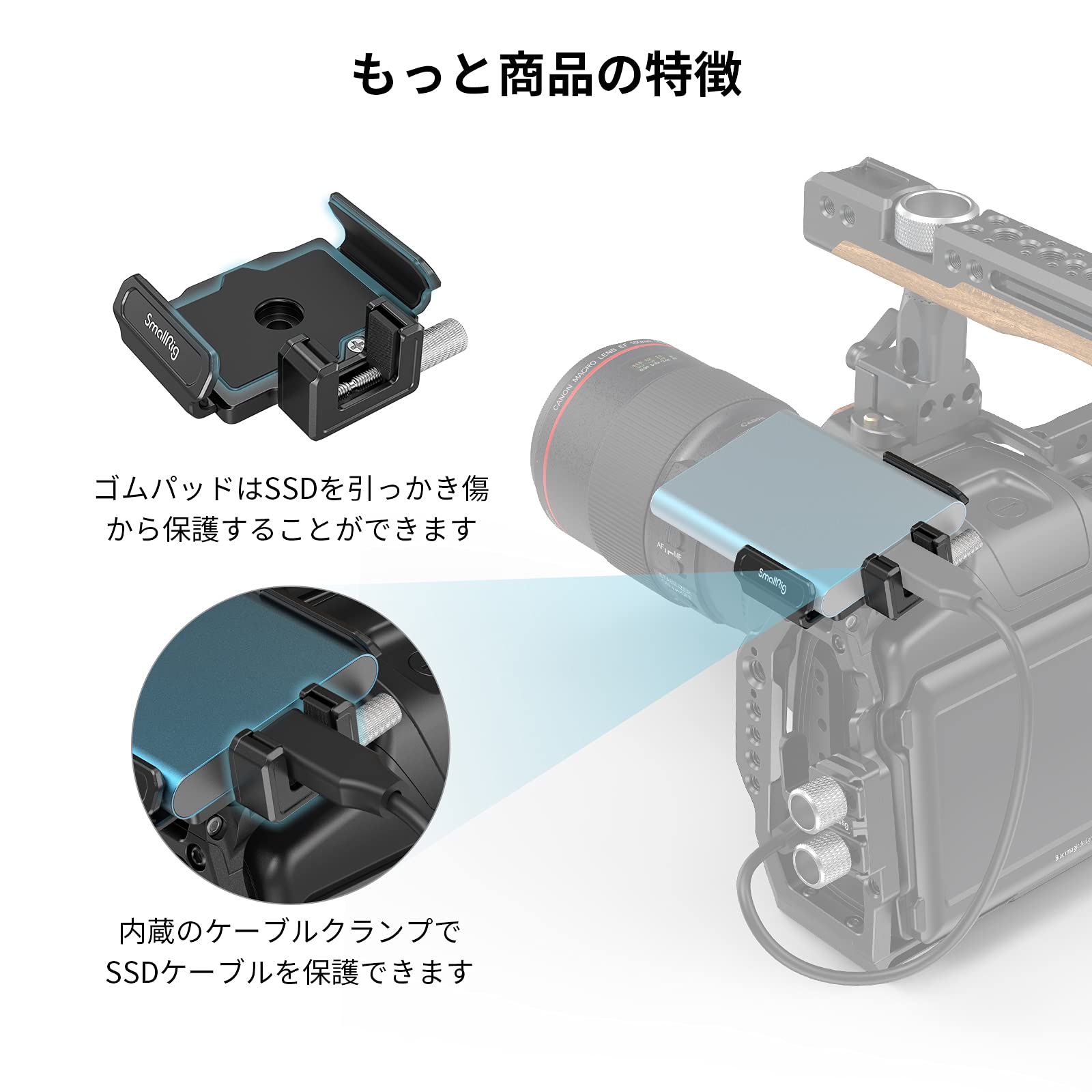 【SSDクランプ】本製品はBMPCC 6K ProカメラにSSDを取り付けるように設計されたカメラリグです。