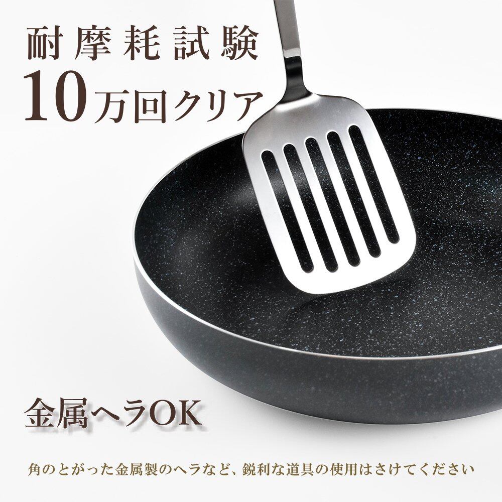 内面は4層コート『ネオ・マーブル』加工で、こびりつきにくく、扱いやすい。