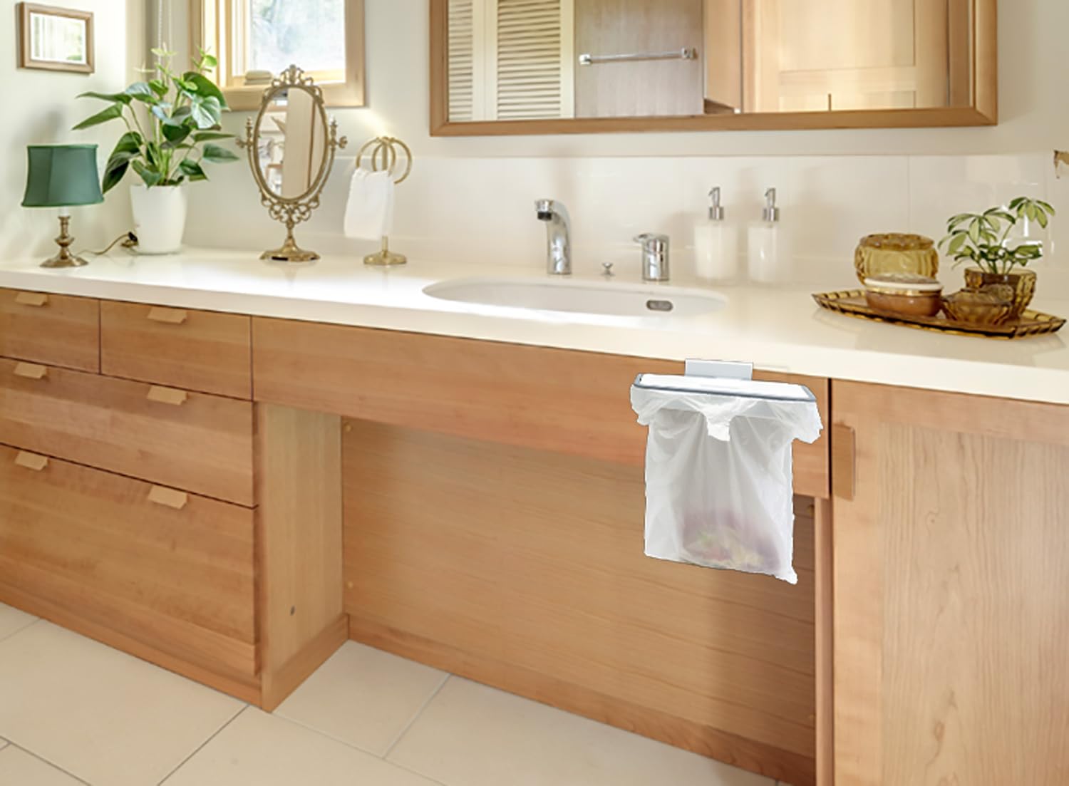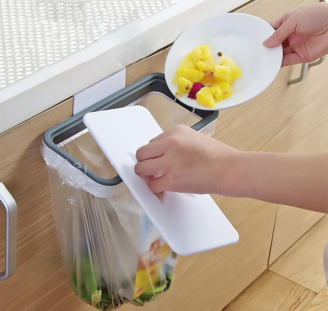 ●レジ袋がそのままゴミ袋になるハンガー ●ゴミ袋をかぶせストッパーで固定するだけ ●蓋つきなので見た目スッキリで臭いも防止する ●シンク下の扉や机の引き出しにかけられるので様々な場所で使えて便利