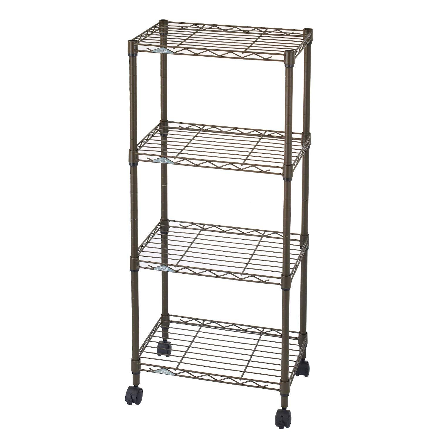 ドウシシャ ルミナス カラーラック ブラウン 4段 幅45 スリム オシャレでかわいい スチールラック 棚 収納 全体耐荷重120kg キャスター付き ポール径19mm 幅45.5×奥行29.5×高さ104 キッチン ランドリー 押し入れ LCR45-4BR | kor Cat*