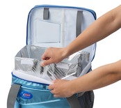 【冷気をブロック】上部に取り出し口(クイックサーブオープニング)があり、クーラー内の冷気を逃す事なく中の物を素早く簡単に取り出すことができます。また、メインファスナーから冷気を逃さないように断熱フォームでカバーする設計となっています。
