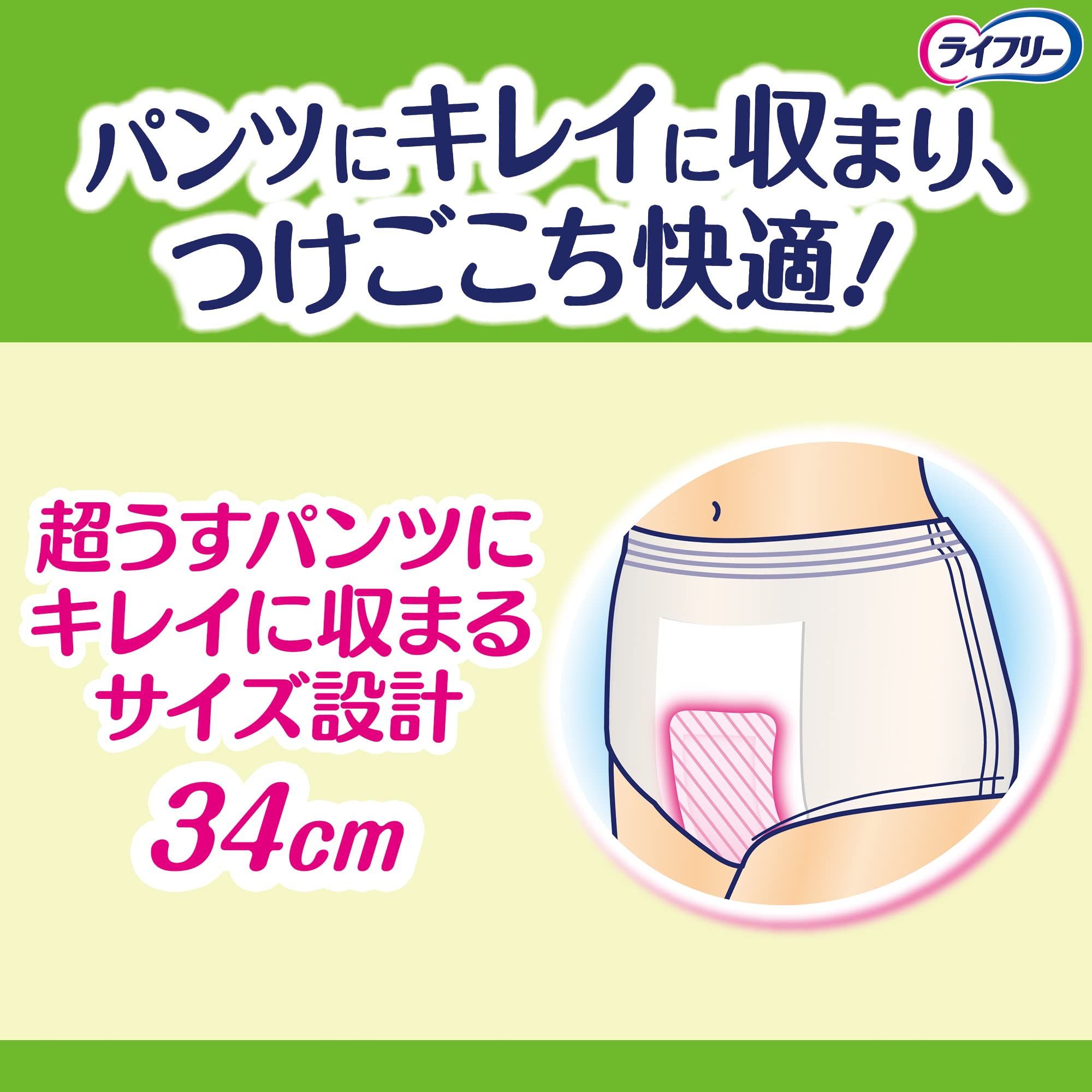 超うすパンツにキレイに収まる長さ34㎝、巾13㎝サイズ設計。