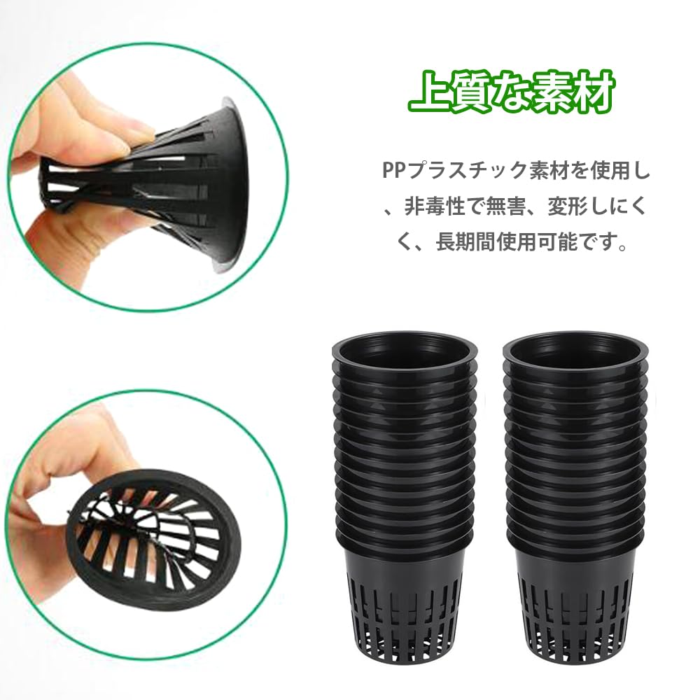 水耕栽培鉢 定植かご 30個セット プラスチックメッシュポット スポンジ付き水培養 有機栽培 植物栽培 野菜栽培 園芸 庭 ガーデンニング 定植育苗かご (ブラック)