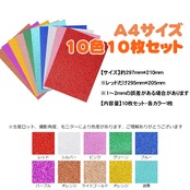 グリッターシート A4 サイズ DIYギフト 多色 10枚 グリッター シート シールタイプ キラキラ 自由に切って 手芸材料 応援うちわ材料 コンサートうちわ素材 PureSino (10枚10色入り)