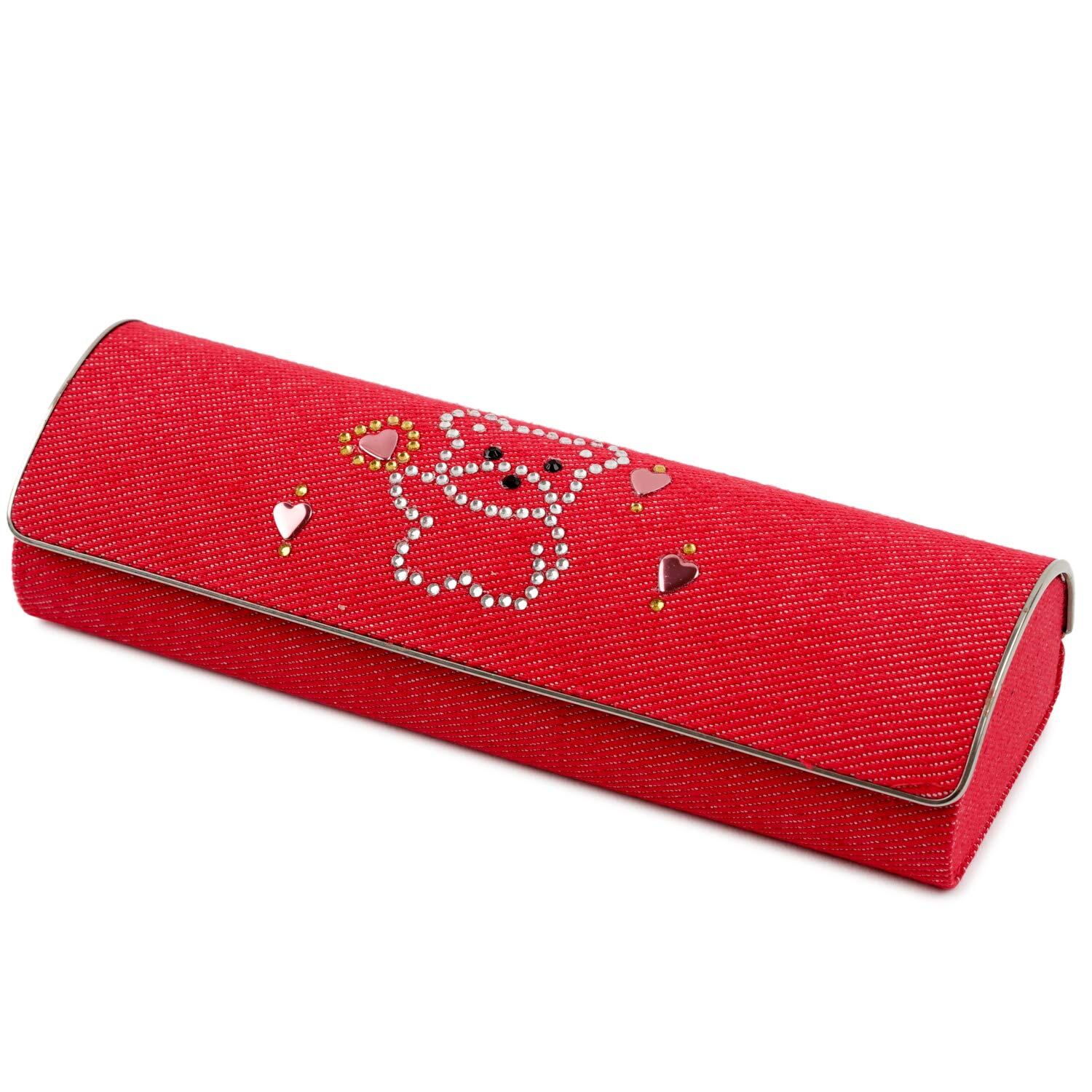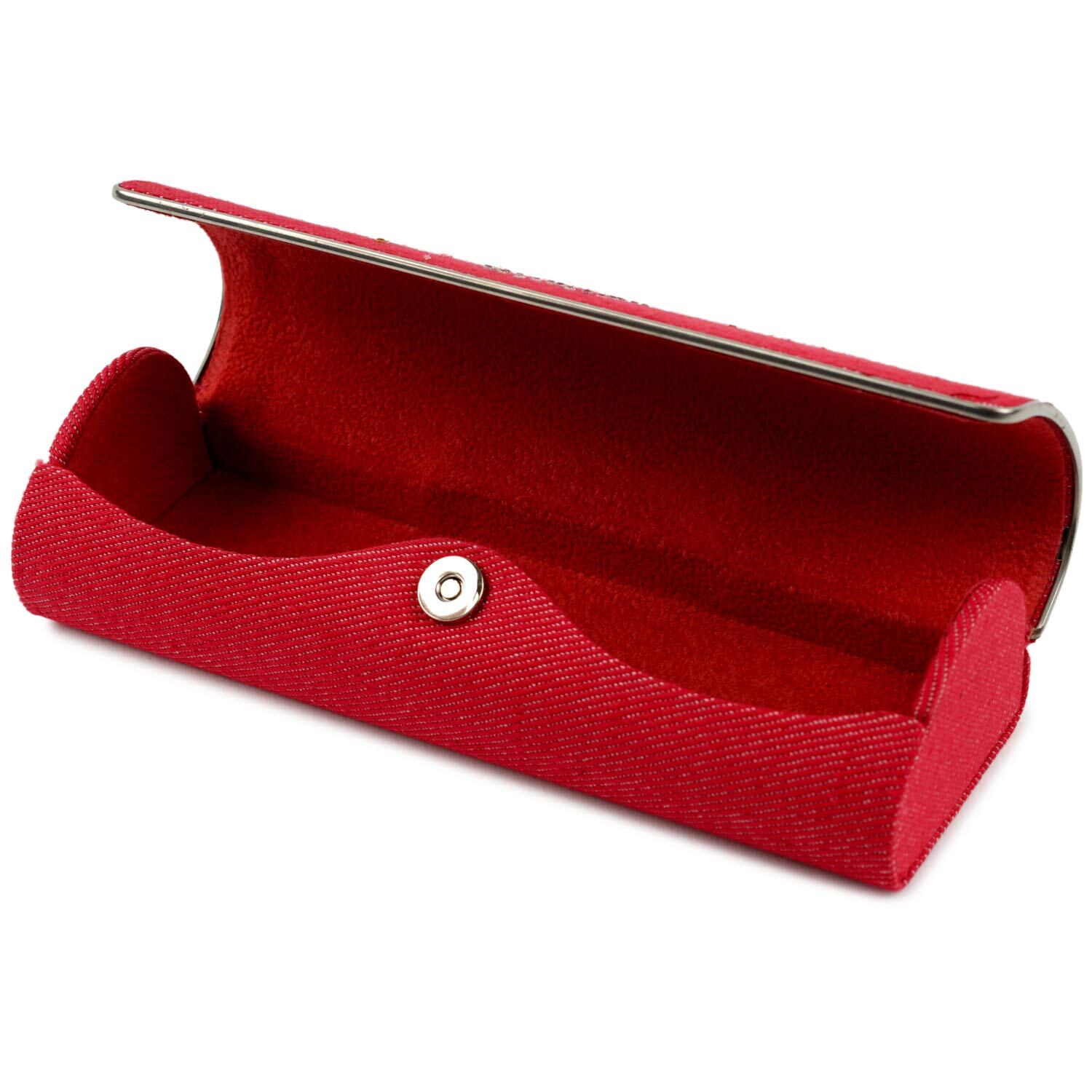 テーシーケース メガネケース 赤 ハード マグネット式 デニム地 TK-1367-3