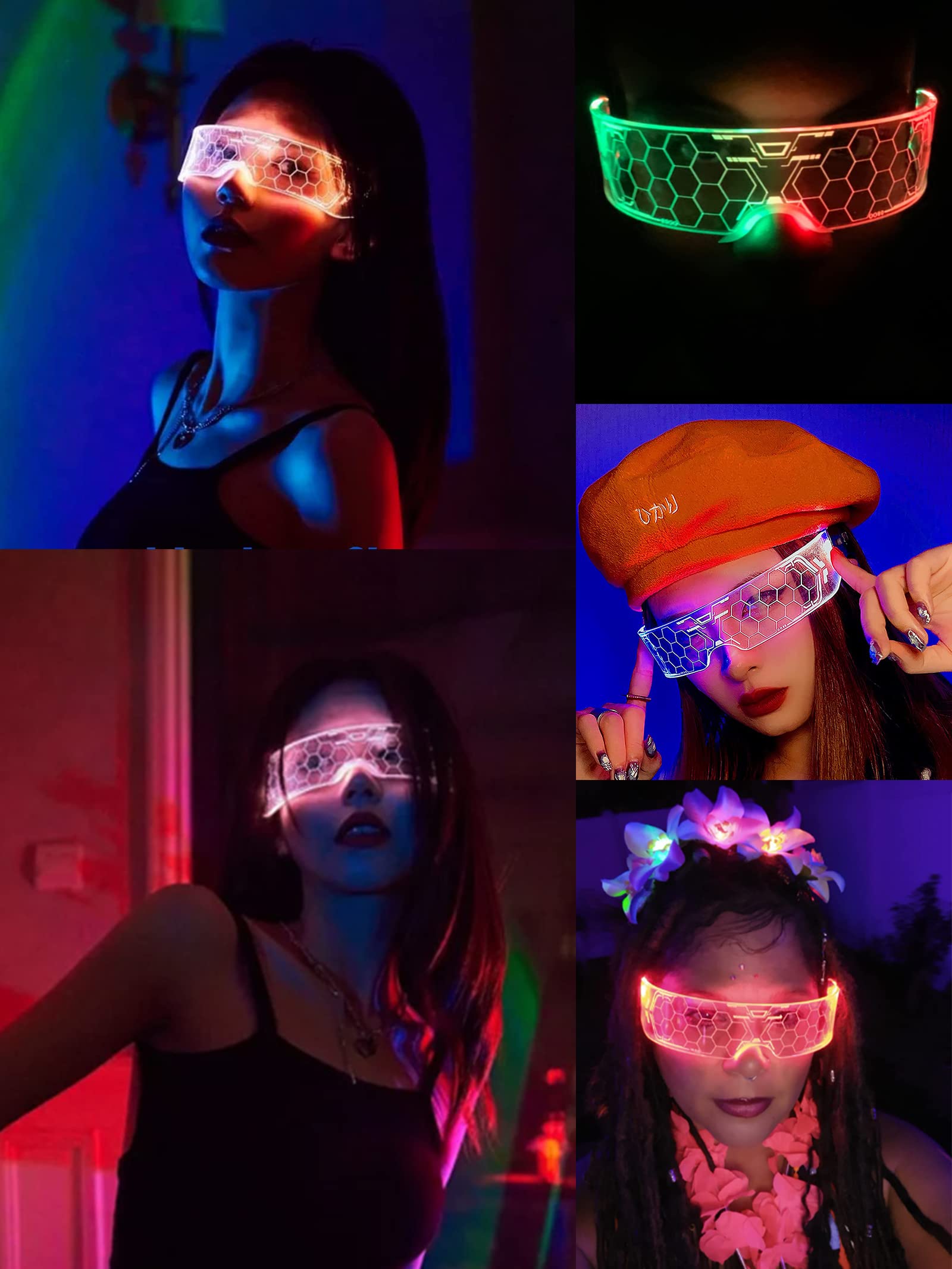[Jinnal] サイバーパンク 光る メガネ 未来 7色 LEDグラス おもしろめがね パーティーグラス コスプレ おめん サングラス ミライのメガネ 面白メガネ 撮影用小道具 光るグラス 11モード
