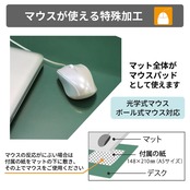 ・ マウスが使える特殊加工で、マット全体がマウスパッドとして使える(光学式/ボール式マウス対応)
