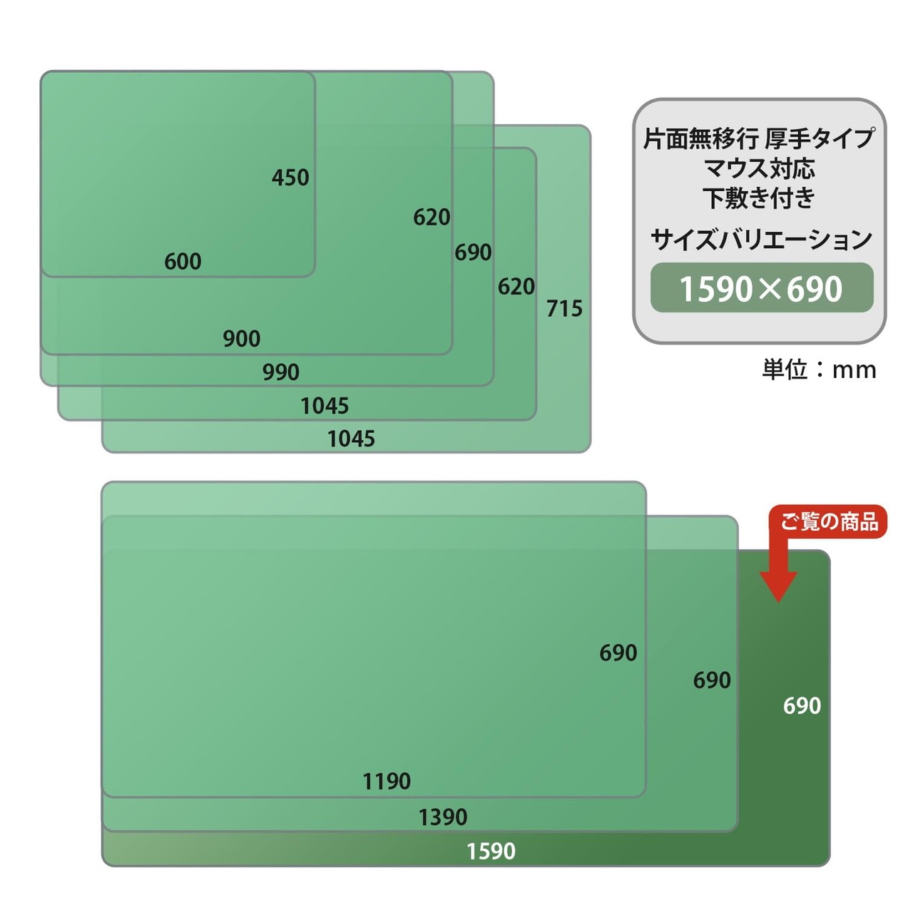 外形寸法:W1590×H690×D1.8㎜ / 下敷厚:1.2㎜