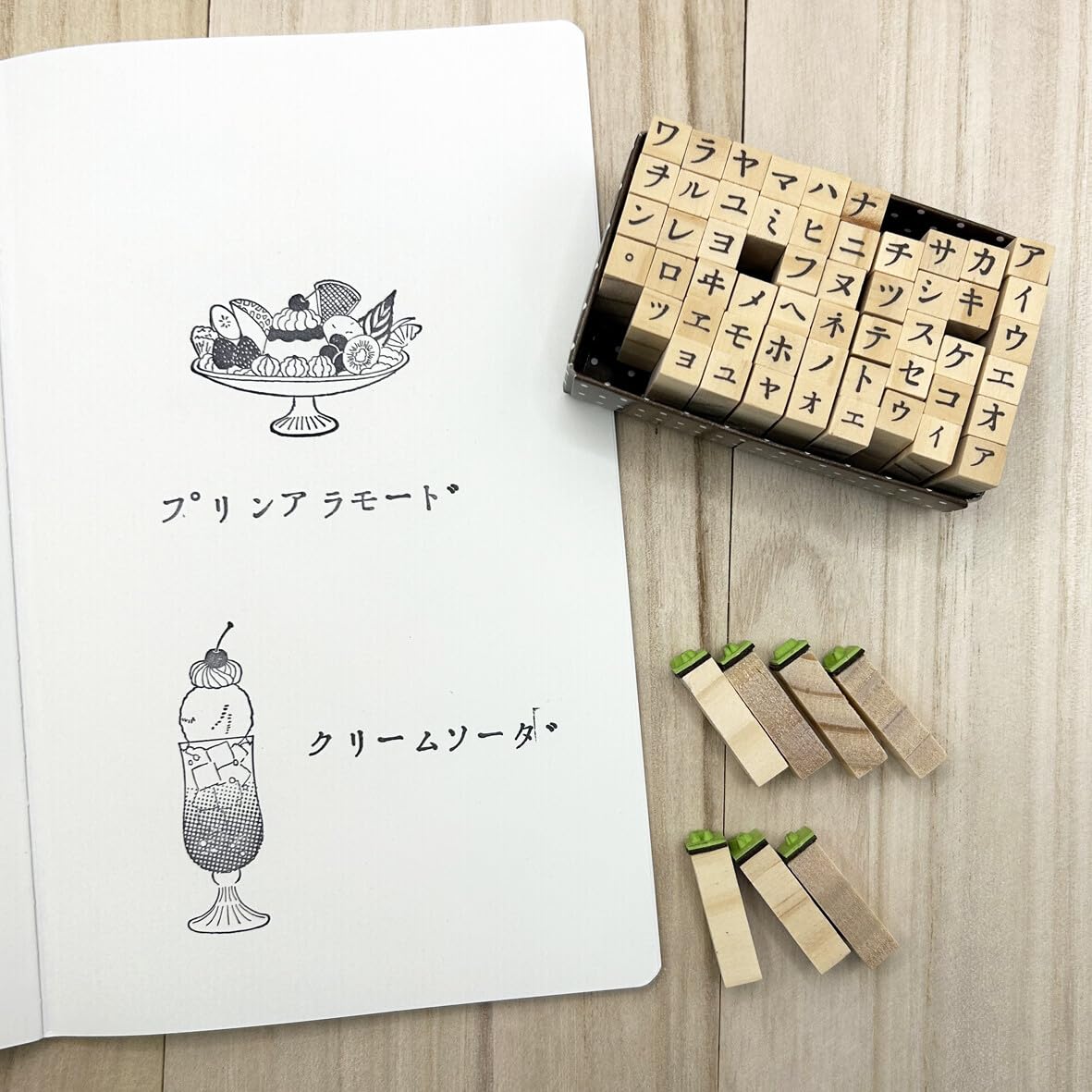 ウッドスタンプ カタカナ 60種類 木製 手帳 スケジュール帳 手紙 贈り物 ハンコ 印鑑 ゴム印 学習
