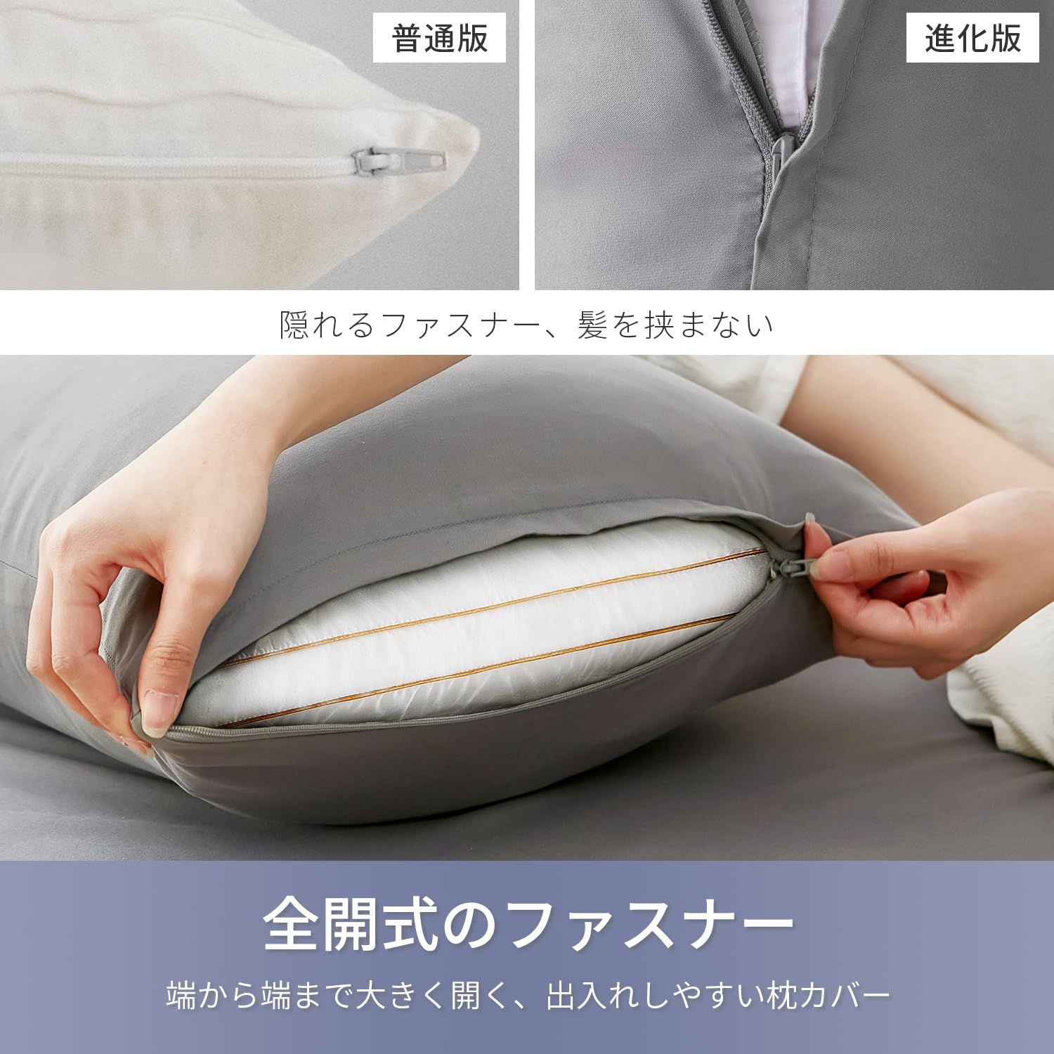 枕カバー 2枚セット 43 63 大きめ ピローケース ピーチスキン加工 ファスナー式 チャック付き おしゃれ オールシーズン 通気 速乾 グレー