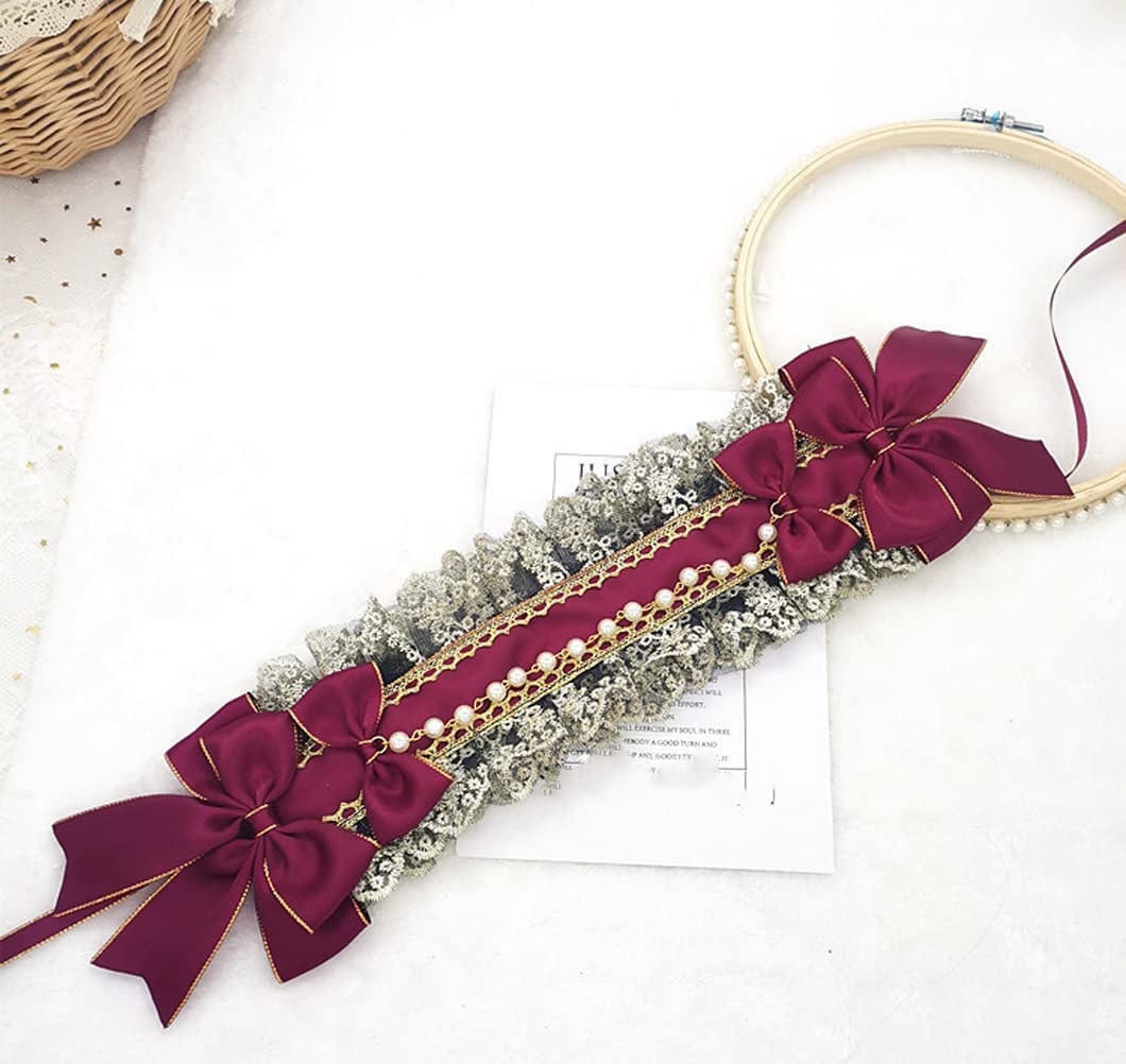 ゴシックロリータ 髪飾り リボン付き ヘアアクセサリー ビーズチェーン フリル レースフリル カチューシャコスプレ系 萌え系 お人形茶話会 パーティー コスプレ系 姫系 甘ロリlolita おしゃれリかわいい ヘッドドレス (ダークパープル Dark purple)