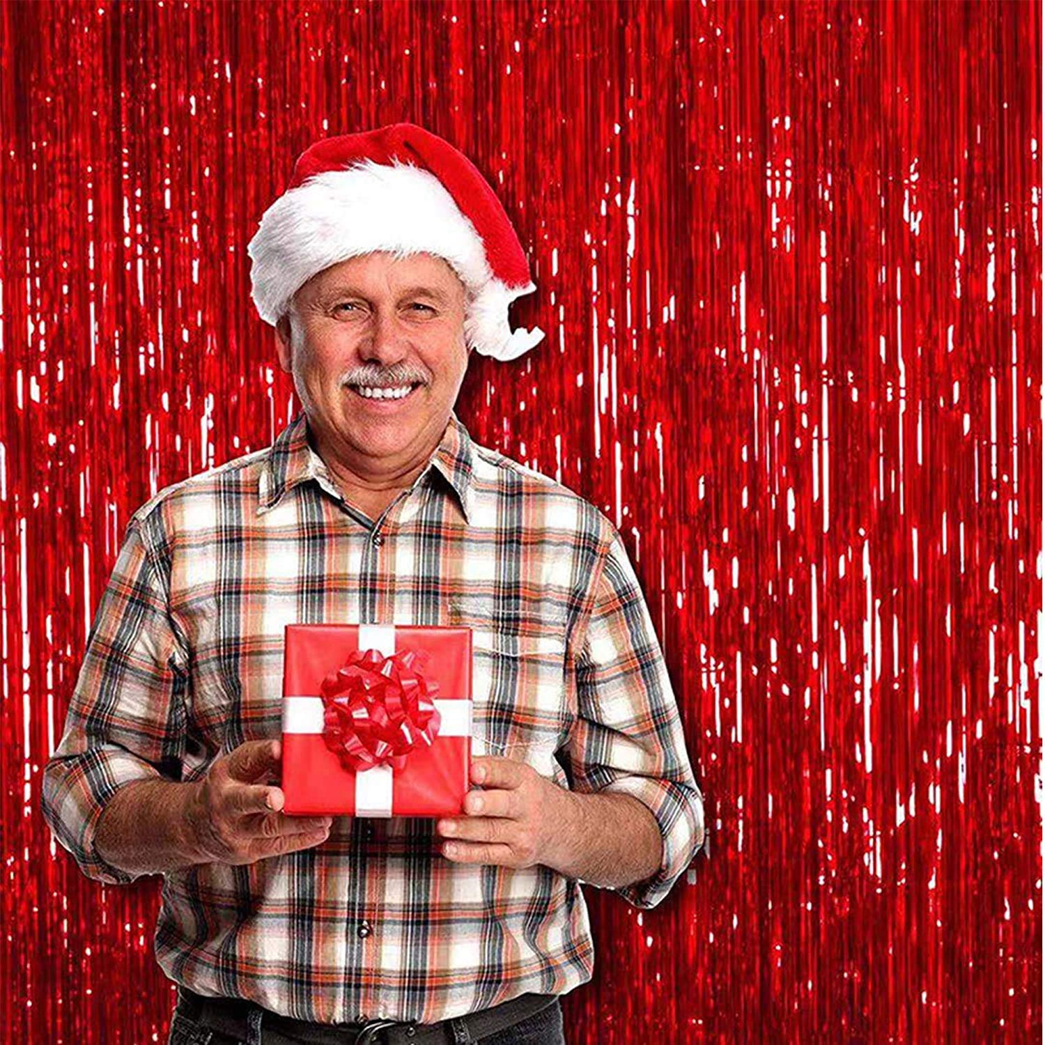 2個セット BRAVESHINE タッセルカーテン キラキラ 背景 明るい光沢 誕生日 飾り付け 100cm*250cm 誕生日 飾り カーテン birthday decorations パーティー デコレーション party decoration(レッド)