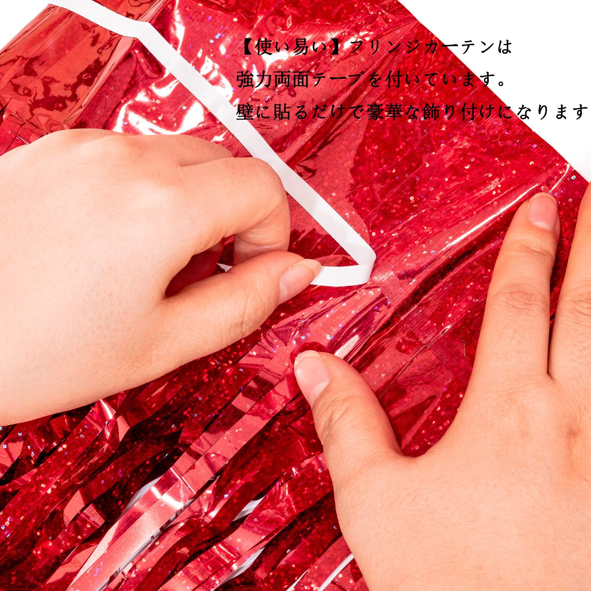 2個セット BRAVESHINE タッセルカーテン キラキラ 背景 明るい光沢 誕生日 飾り付け 100cm*250cm 誕生日 飾り カーテン birthday decorations パーティー デコレーション party decoration(レッド) | kor Cat*
