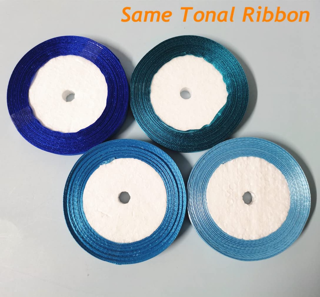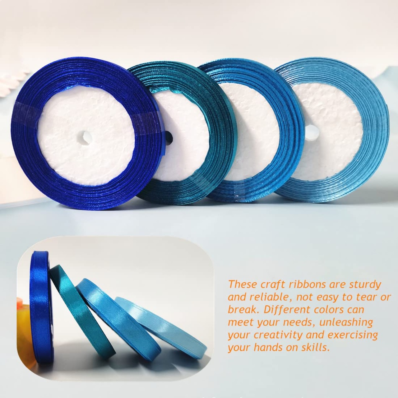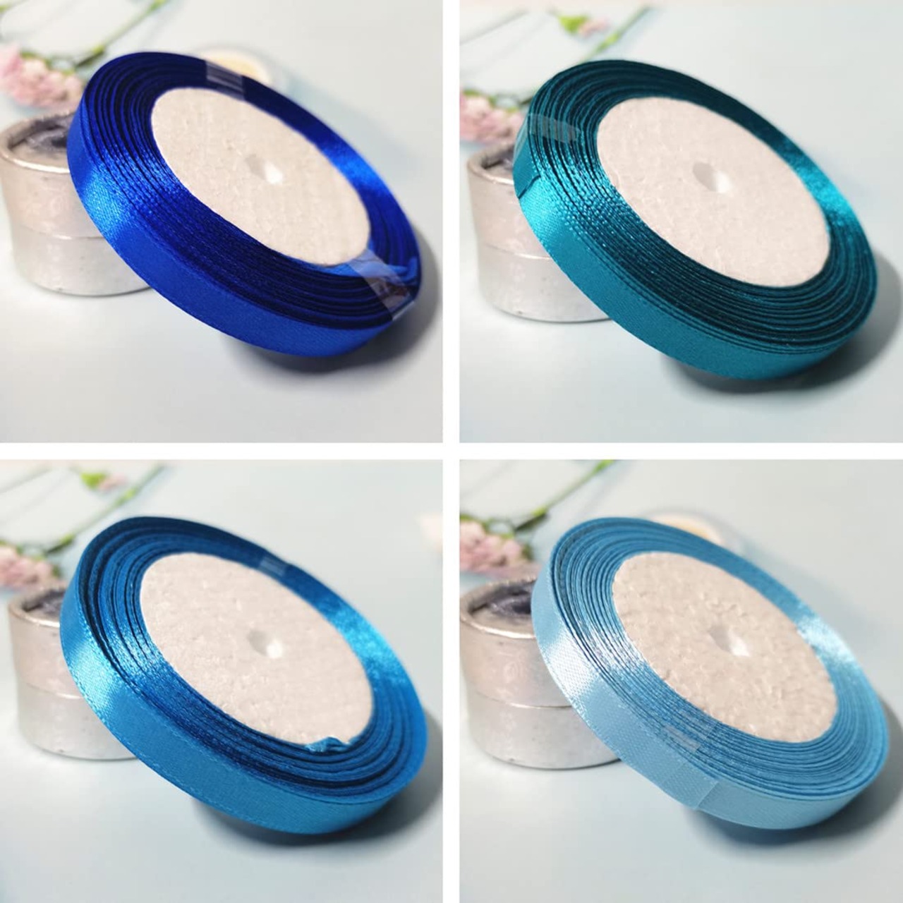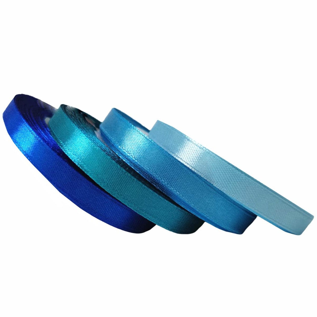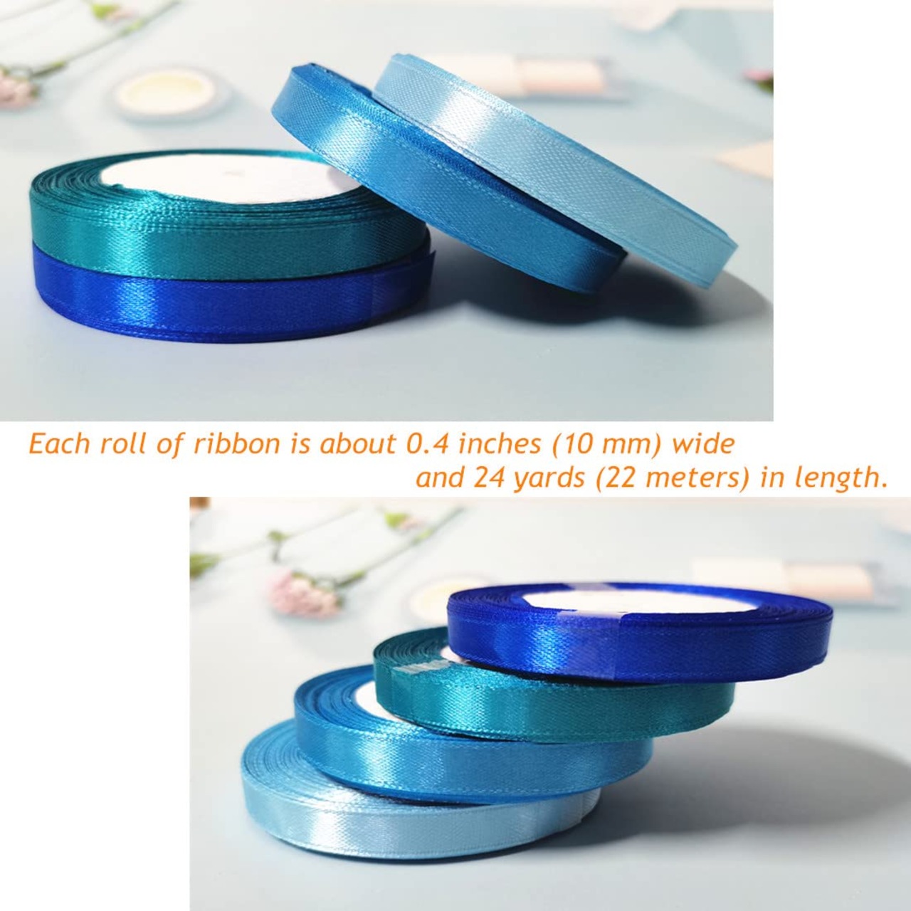 4巻 22m ファブリックリボン サテンリボン、10mm シングルフェイス リボンロール クラフトリボン 飾りリボン 為に 花束 ギフト包装 結婚式 パーティーの装飾 ヘアボウ作り DIY 手芸用品 (ブルーシリーズ)