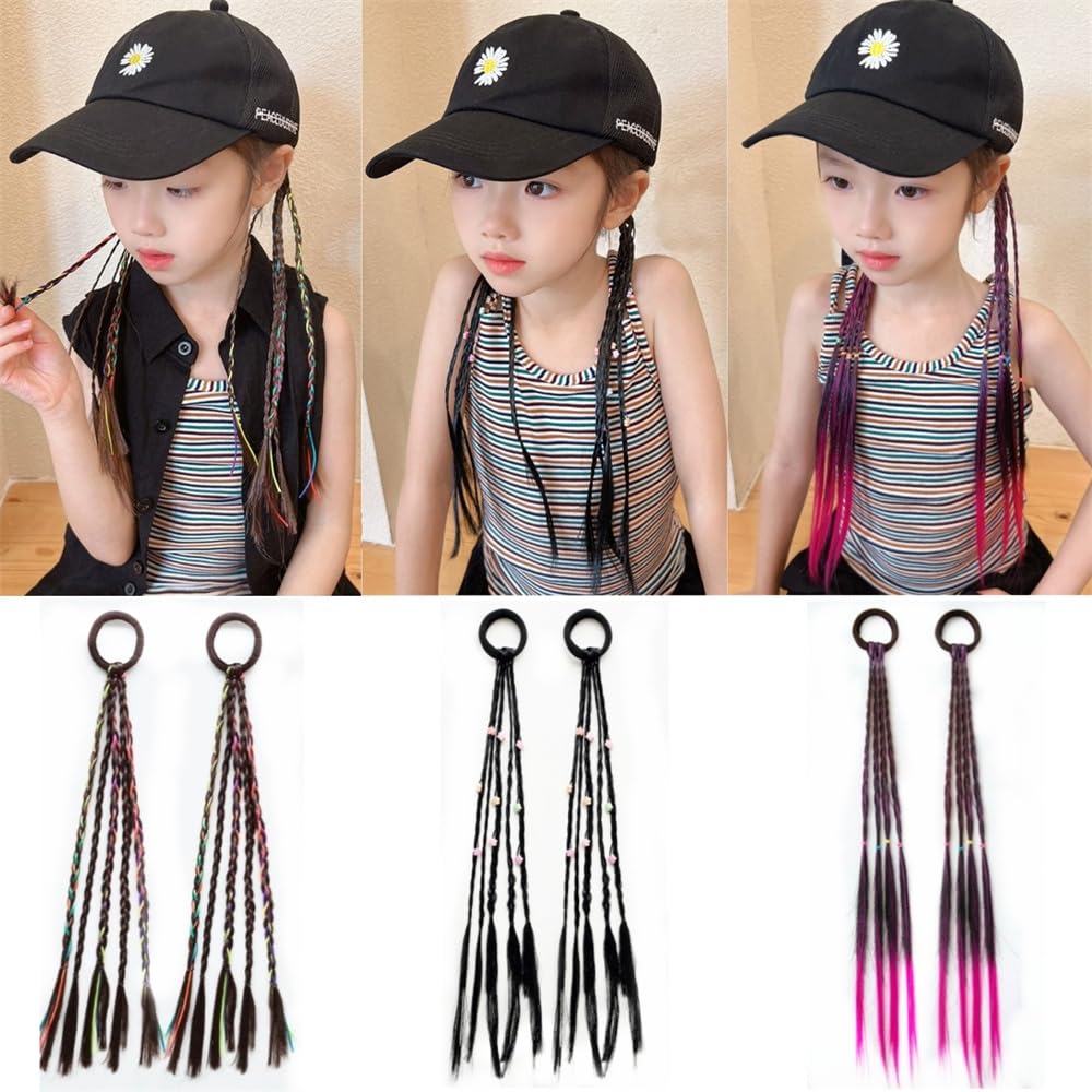 ヘアエクステ 三つ編み ウィッグ 子供 カラーエクステ ダンス エクステンション ポニーテール ウィッグ ツインテール 編み込み エクステ 付け毛 コスチューム キッズ イベント(A) | kor Cat*