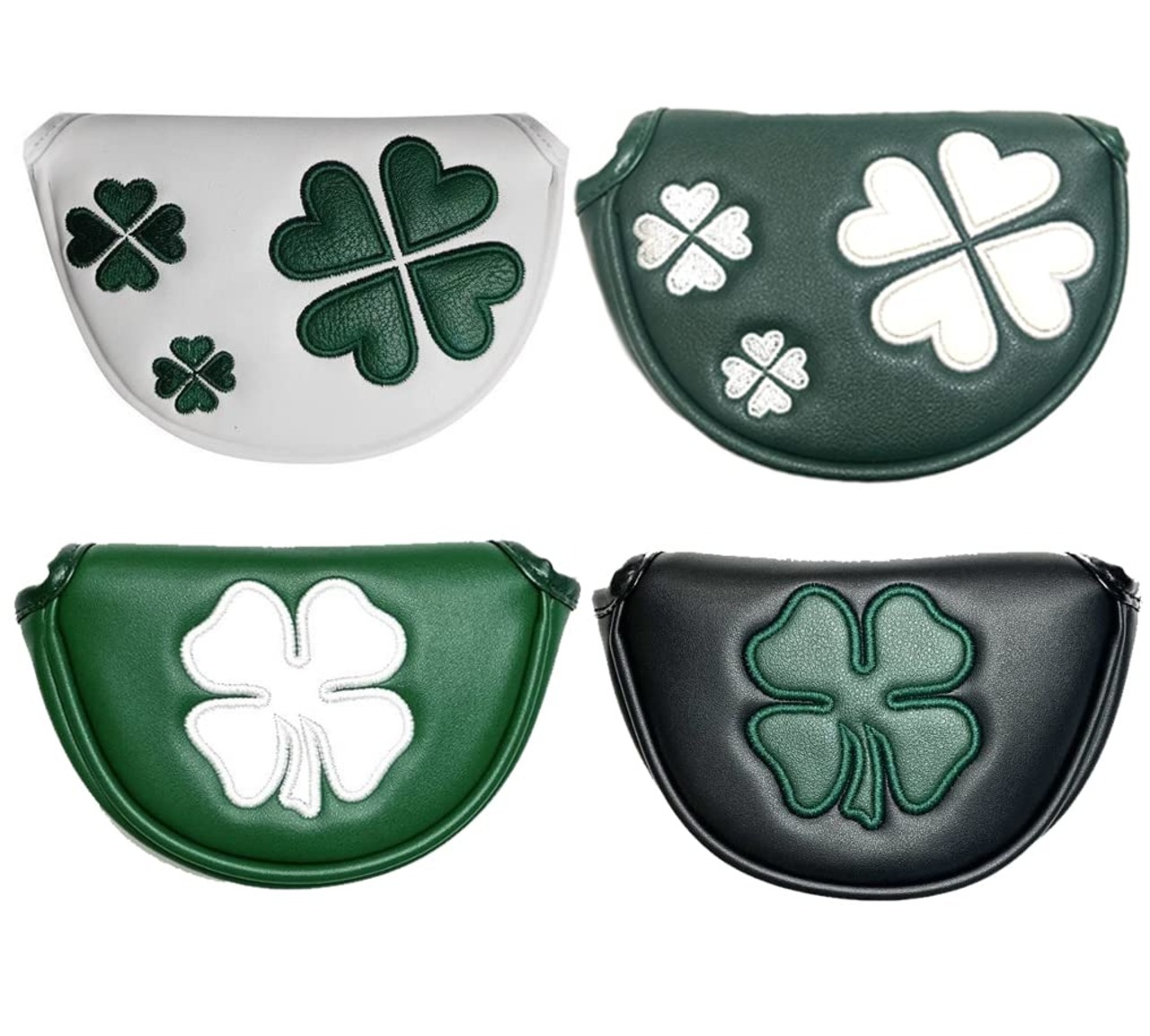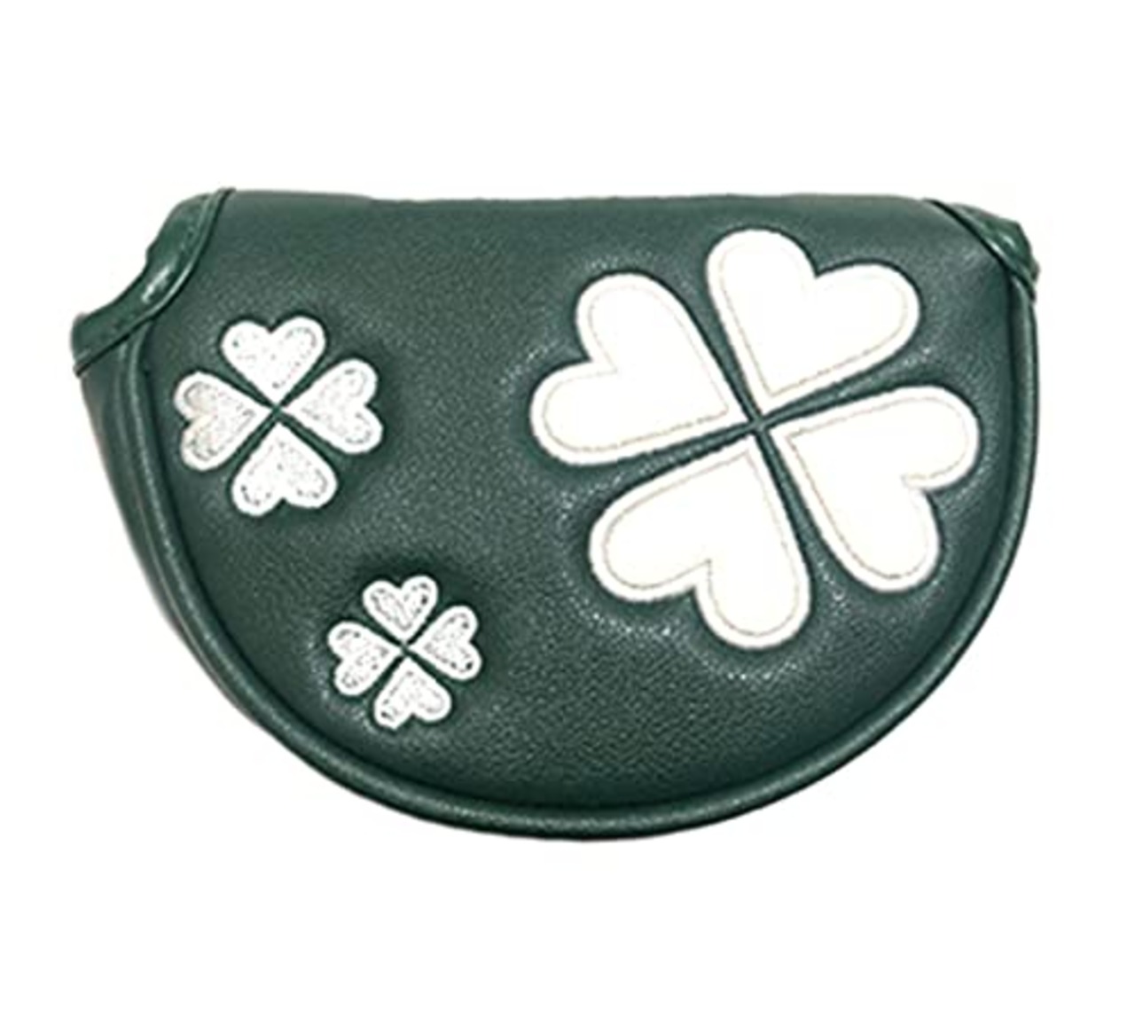 パターカバー ゴルフヘッドカバー オデッセイに対応 レッド小型マレットタイプ対応 マグネット付け クローバー模様 白 緑 黒