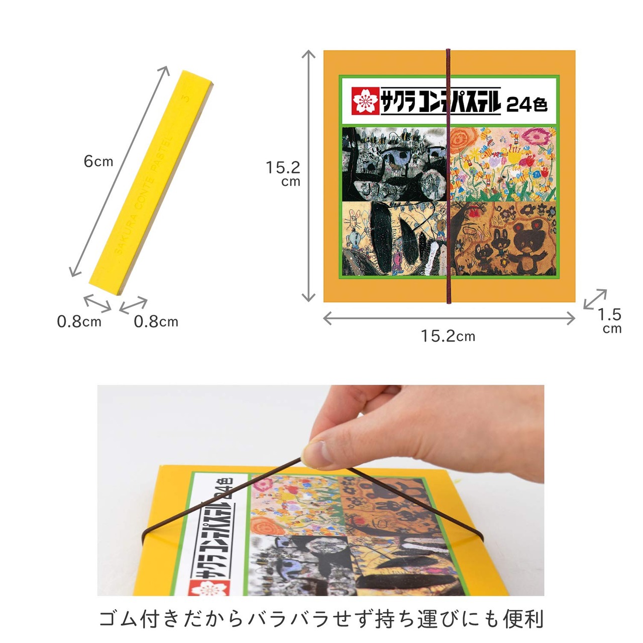 【特長1】細かい線描き、ソフトな面塗りが自由にできるサクラ独自の優れた描画材料。適度にやわらかいので混色、ぼかしなどの高度な技法が駆使できる。