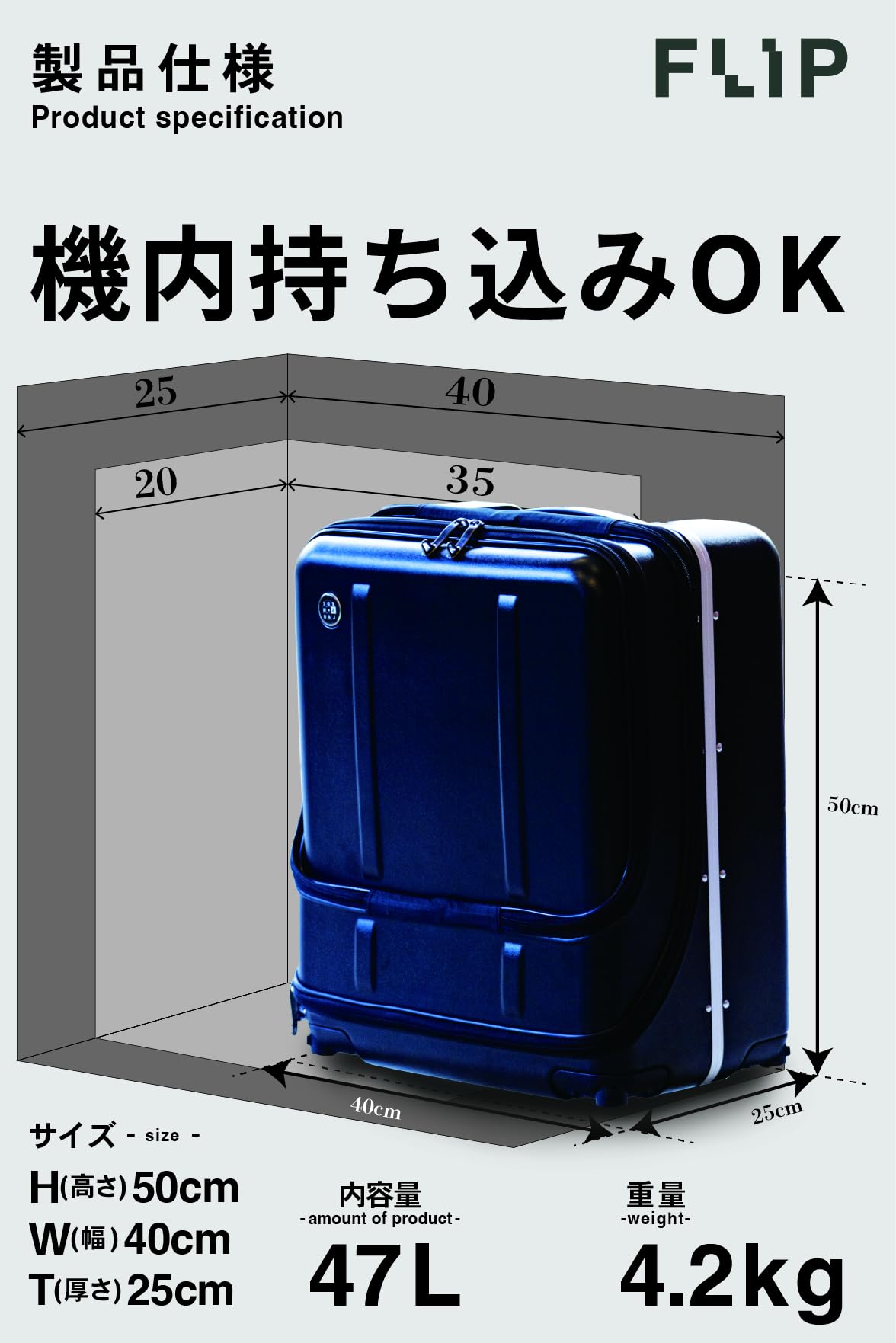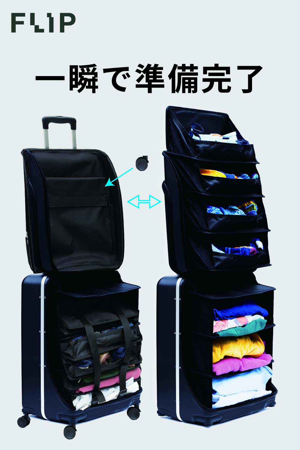 [EDISON LAB] 棚になるスーツケース47L静音キャスター外して機内持ち込みできるFLIPフリップ ポリカーボネート軽量SサイズダブルTSAロック、フロントオープンで17インチPCも収納ビジネス旅行にキャスター交換で簡単に自分で修理メンズ、レディースに人気(ブラック)