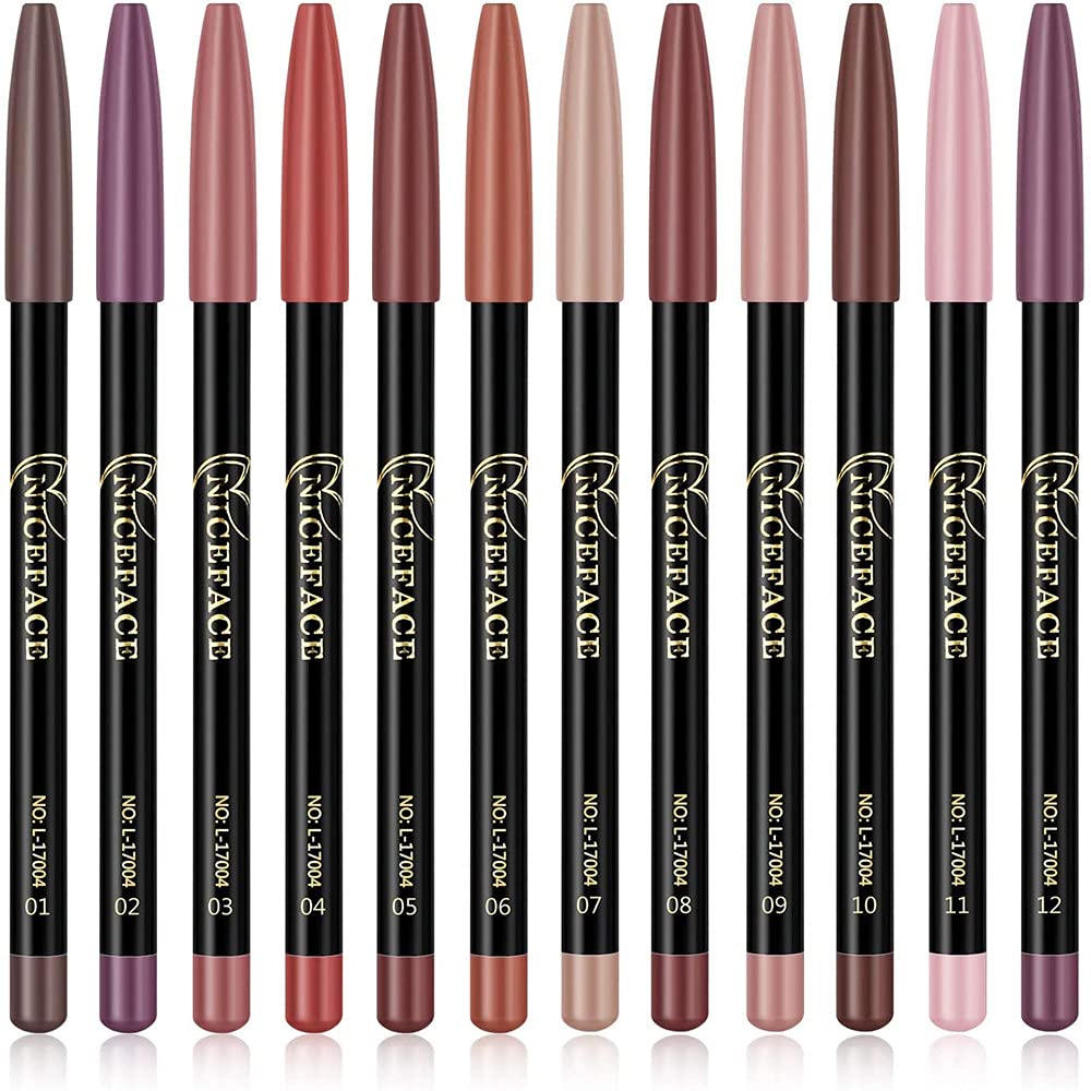 12色ペンシルマットリップライナーセット、長持ち、防水、スムーズ、ナチュラル、プロのメイクアップリップライナーペンシルセット女性用