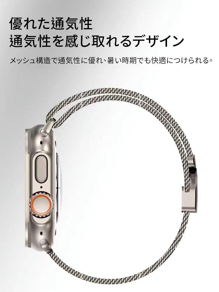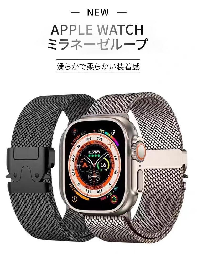 ミラネーゼループ for Apple Watch バンド 49mm 46mm 45mm 44mm 42mm 41mm 40mm 38mm アップルウォッチバンド メッシュ 無段階調節 装着感 iwatch バンド アップルウォッチ Ultra3/Ultra2/Ultra/10/9/8/7/6/5/4/3/2/1 140-200mmの手首に対応