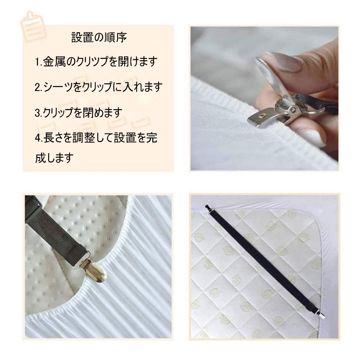 【調整可能】お布団ずれ落ちクリップはマジックテープつき、伸縮可能ので、長さを調整できます。シーツ固定して、一晩中快適な寝心地は実現できます。