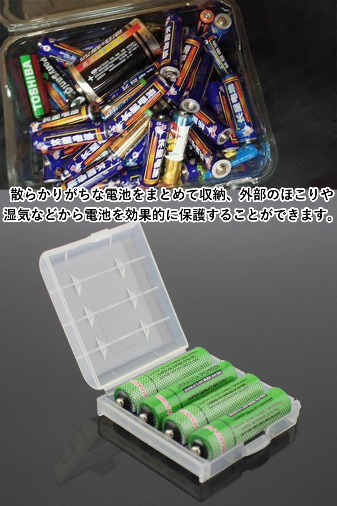 散らかりがちな電池をまとめて収納、外部のほこりや湿気などから電池を効果的に保護することができます。