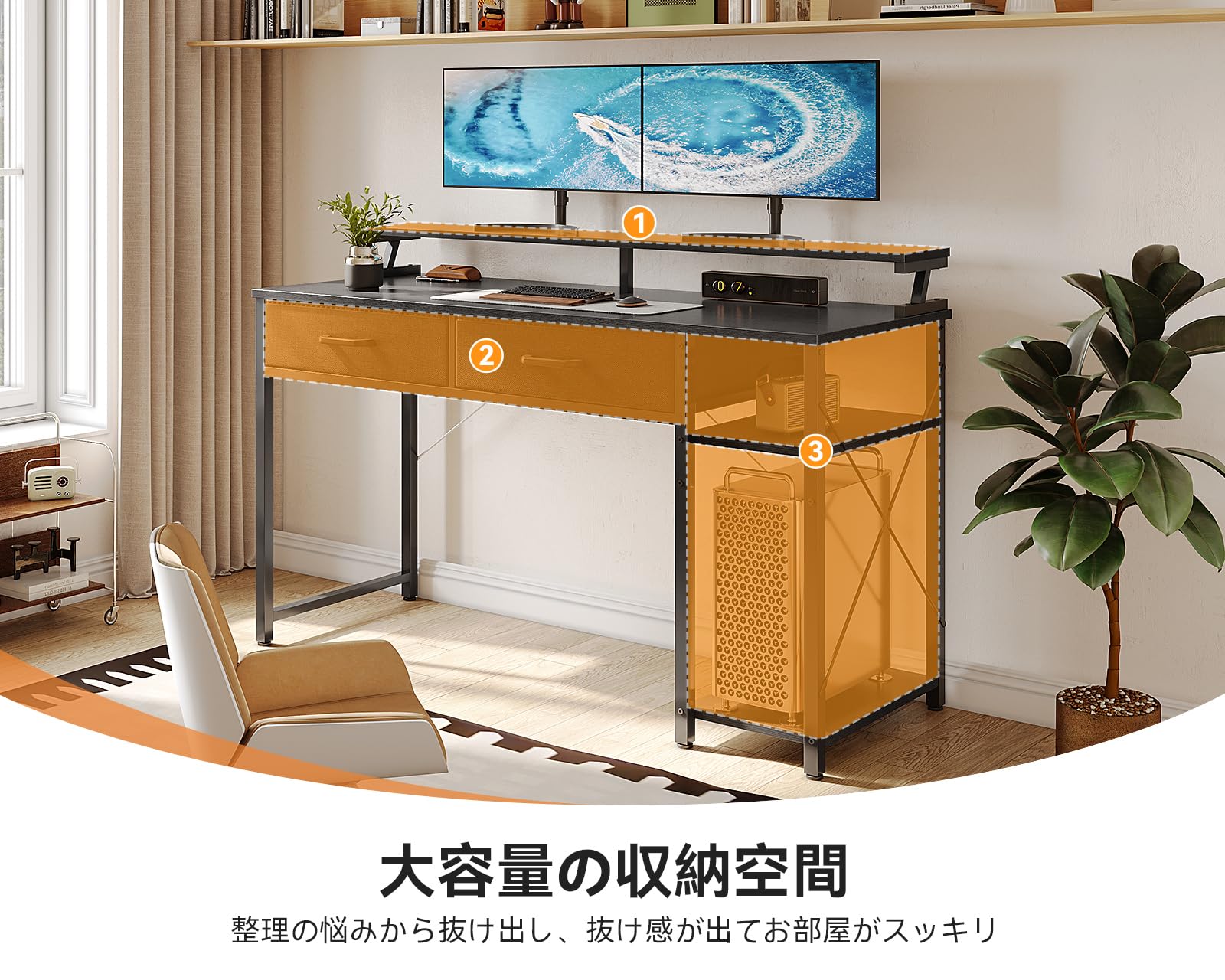 【広々とした空間、しっかりとした作り】作業と収納のエリアを明確に区切り、作業効率が大幅にアップ、在宅勤務に気軽に対応できる。強度と耐久性が高いスチールフレームを採用しており、がたつかなくしっかりした使用感を差し上げます。万が一ご購入した商品に初期不良が発生した場合、いつでもお気軽にお問い合わせください。