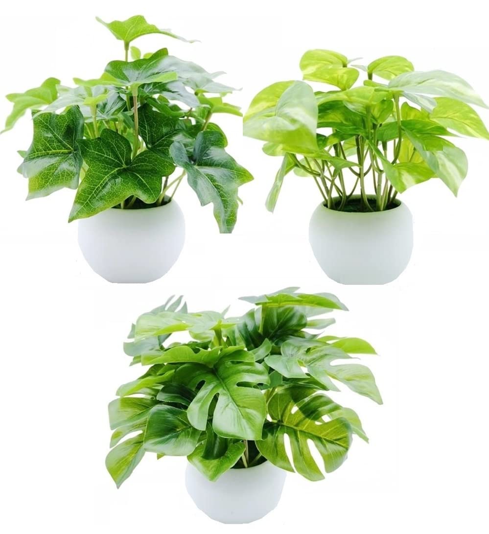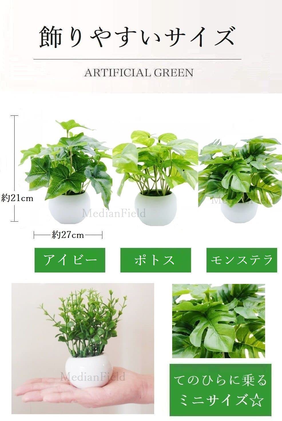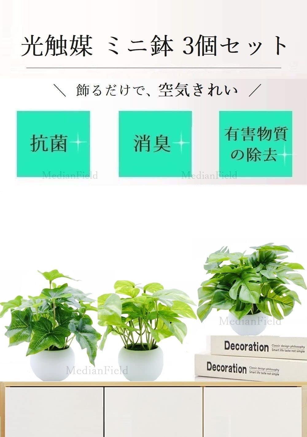 MedianField 【 観葉植物 光触媒 ミニ 鉢植え 3個 セット 】 消臭 & 抗菌 フェイクグリーン 造花 鉢 人工観葉植物 おしゃれ インテリア 雑貨 人工 フェイク グリーン 卓上 緑 植物 鉢植え 葉 小さい ギフト (光触媒 モンステラ ポトス アイビー)