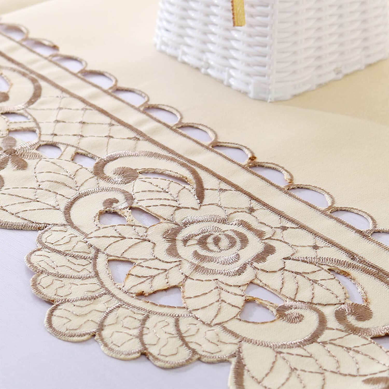 uxcell テーブルランナー 花柄 刺繍 おしゃれ タッセル付き テーブルクロス テーブルカバー 北欧 可愛い インテリア 40x150cm