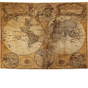 レトロな雰囲気、ヴィンテージ風のデザインで大航海時代を思わせる世界地図が描かれています。