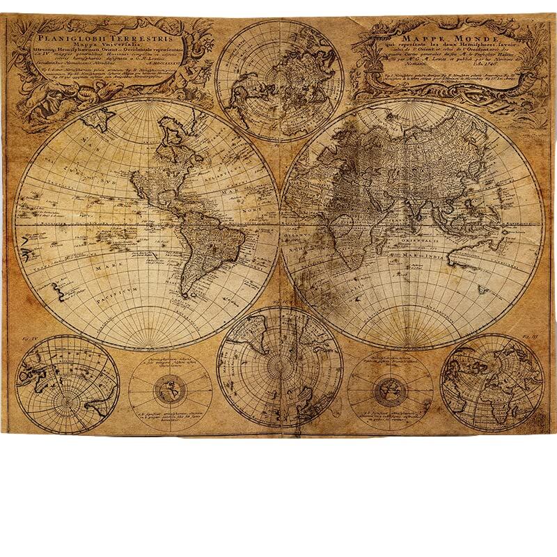 世界地図 ポスター アンティーク マップ ヴィンテージ 壁飾り 布製 ワールドマップ 古地図 (150㎝100㎝)