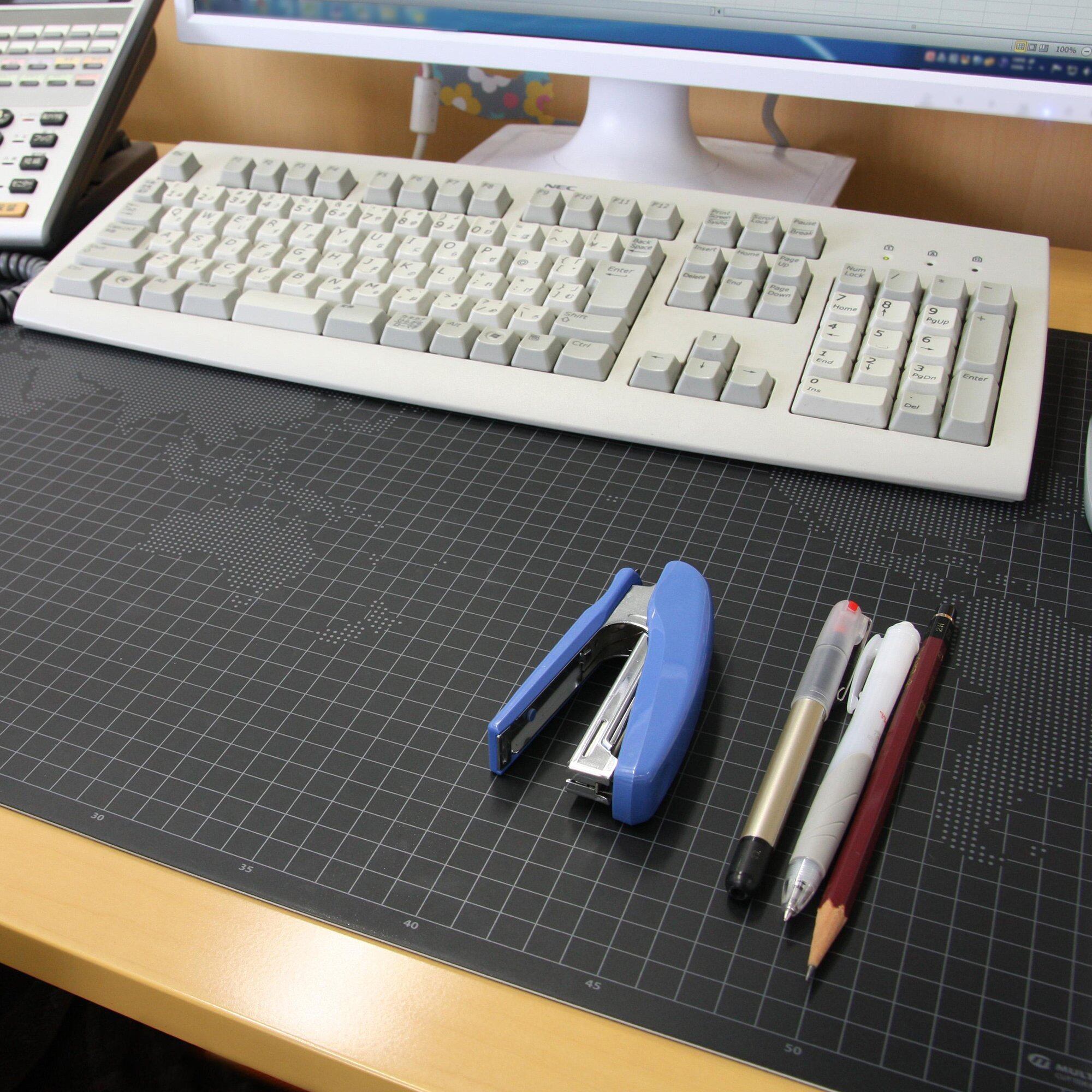 ●片面(黒)は世界地図を模したドット入りでデスクマットとしても使えるデザイン。