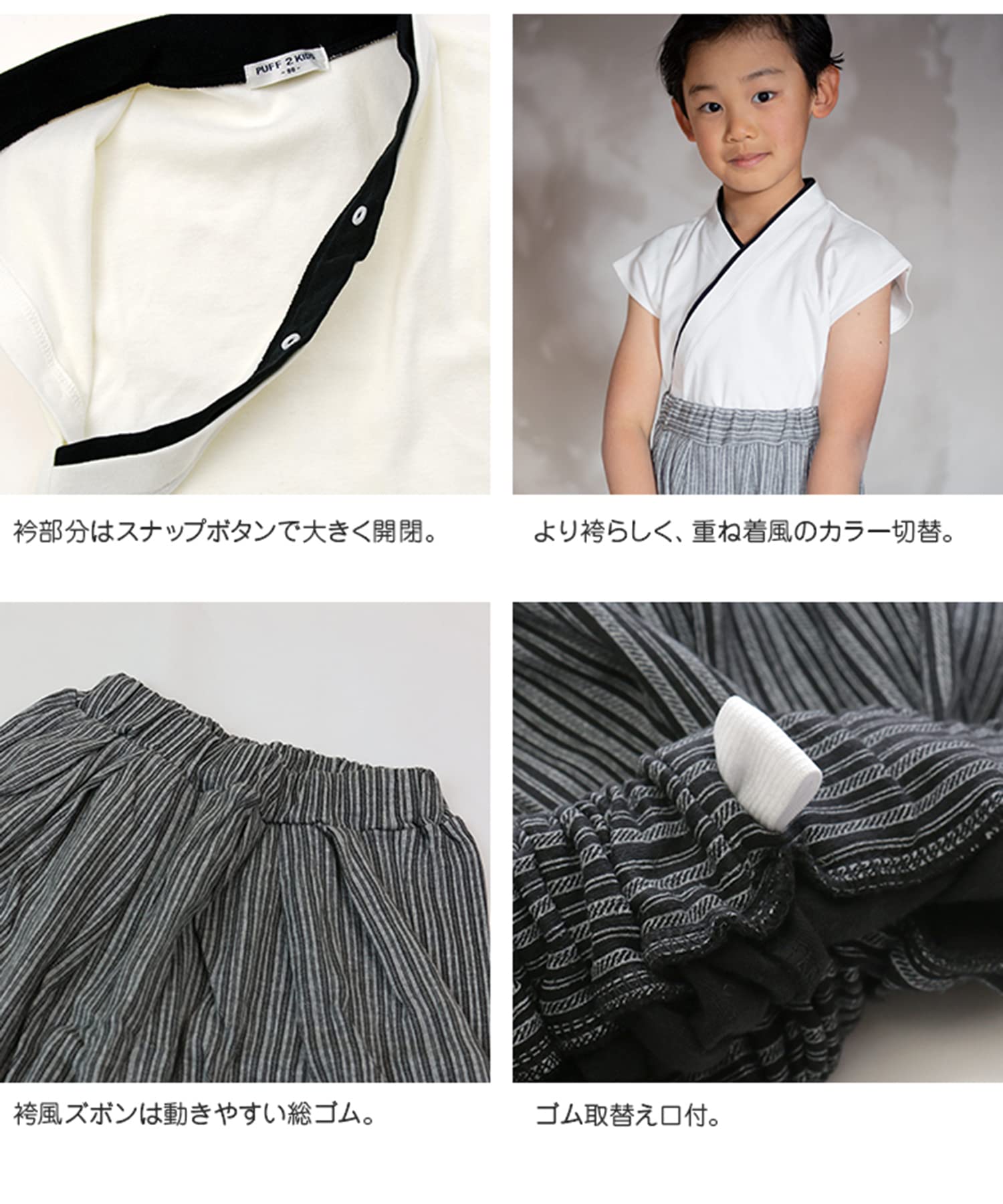 [Puff 2 Kids] ベビー キッズ 子供服 袴風 男の子 フォーマル 3点 セット 90 95 100 110 120 130cm