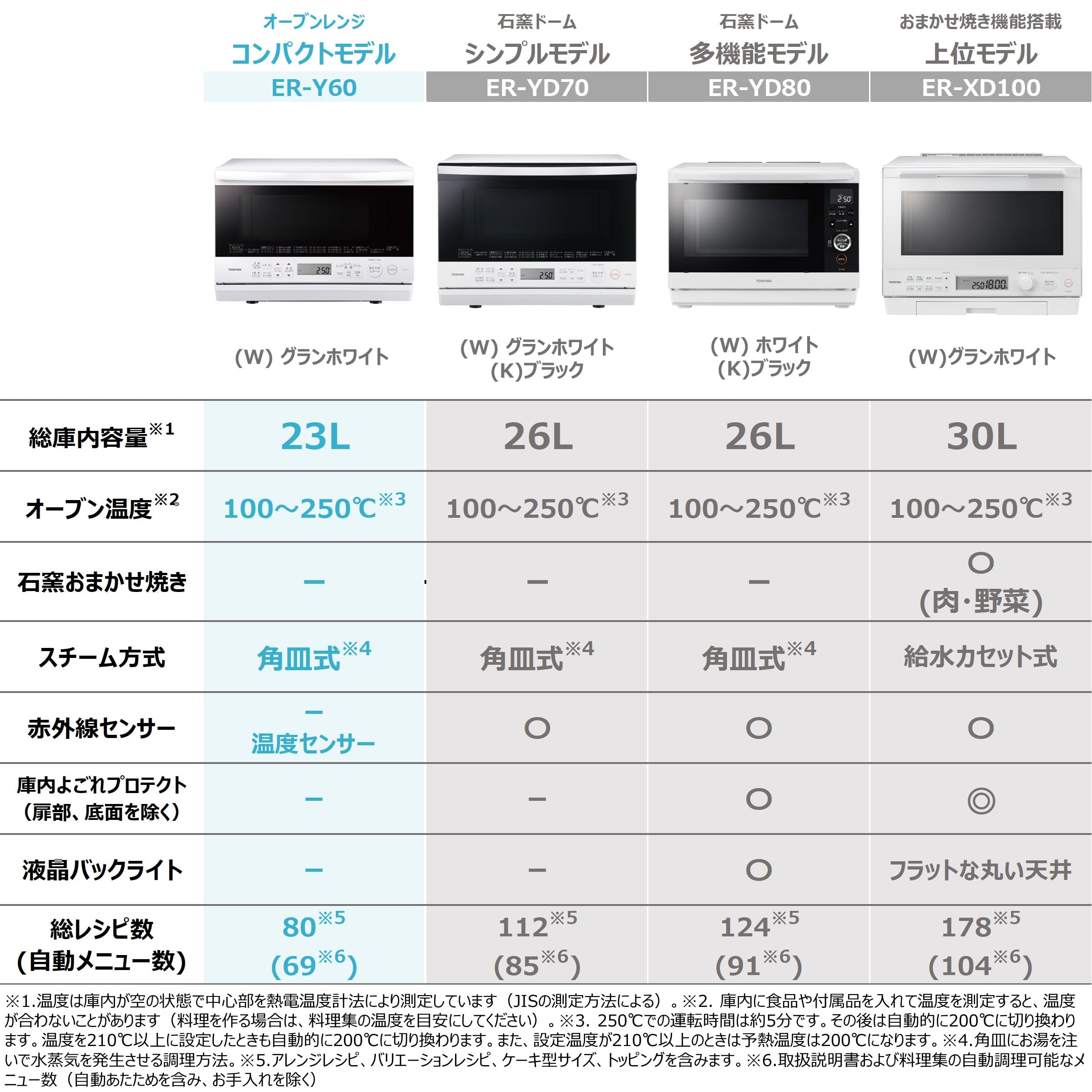 TOSHIBA(東芝) スチームオーブンレンジ 石窯オーブン 23L ER-Y60(W) グランホワイト 250℃ フラットテーブル 電子レンジ 赤外線センサー ノンフライ調理 簡単お手入れ 小型 新生活 一人暮らし