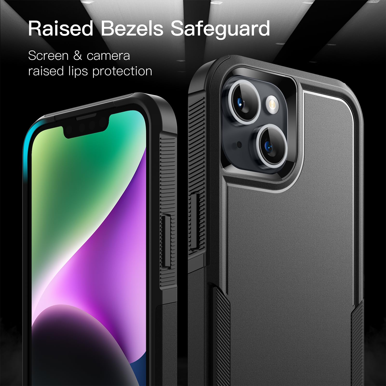 JEDirect iPhone 14 6.1インチ用 ケース 高耐久性 頑丈な二重保護 耐衝撃 タフカバー マットバック付き (ブラック)