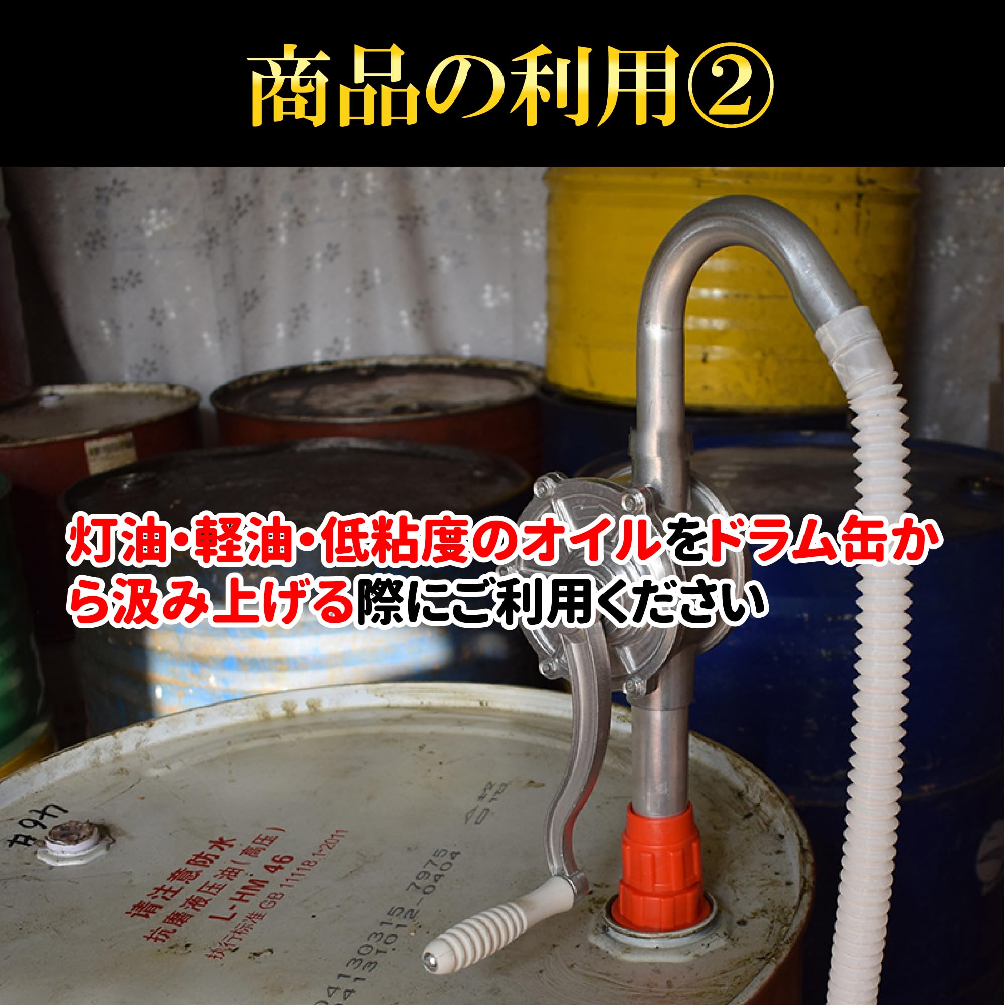 【商品タイトル】 ドラムポンプ ドラム缶 オイルポンプ 灯油ポンプ ポンプ 手回し式 回転式 吸い上げ 汲み上げ 灯油 給油 軽油 アルミ製 手動式 25L 70回転