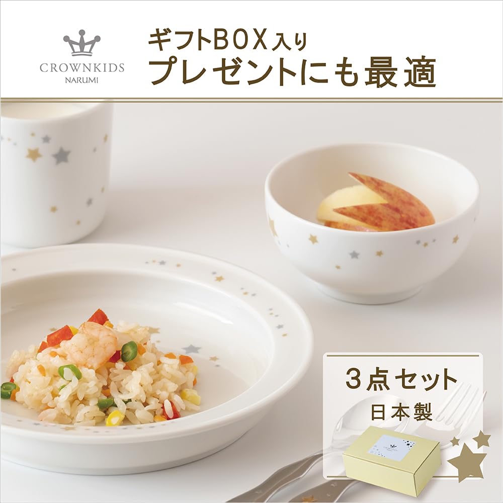 NARUMI(ナルミ) 子供用 食器セット シャイニングスター 3点セット かわいい すくいやすい食器 出産祝い お食い初め 離乳食 ギフト 電子レンジ温め 食洗機対応 日本製 ギフト箱入り 41795-33551