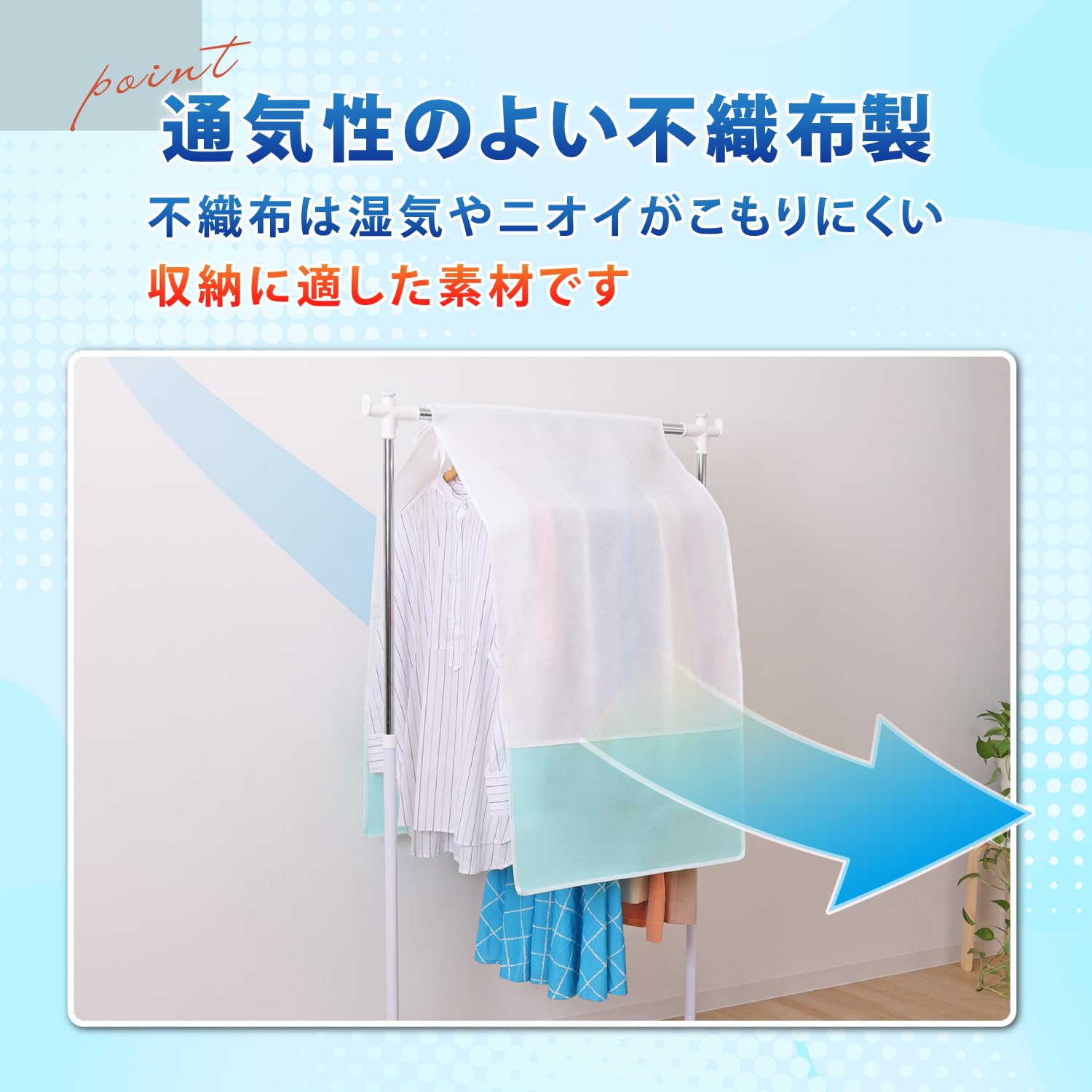 ●ハンガーラックやクローゼット内の衣類をホコリから守る。幅60cmのスリムサイズ。