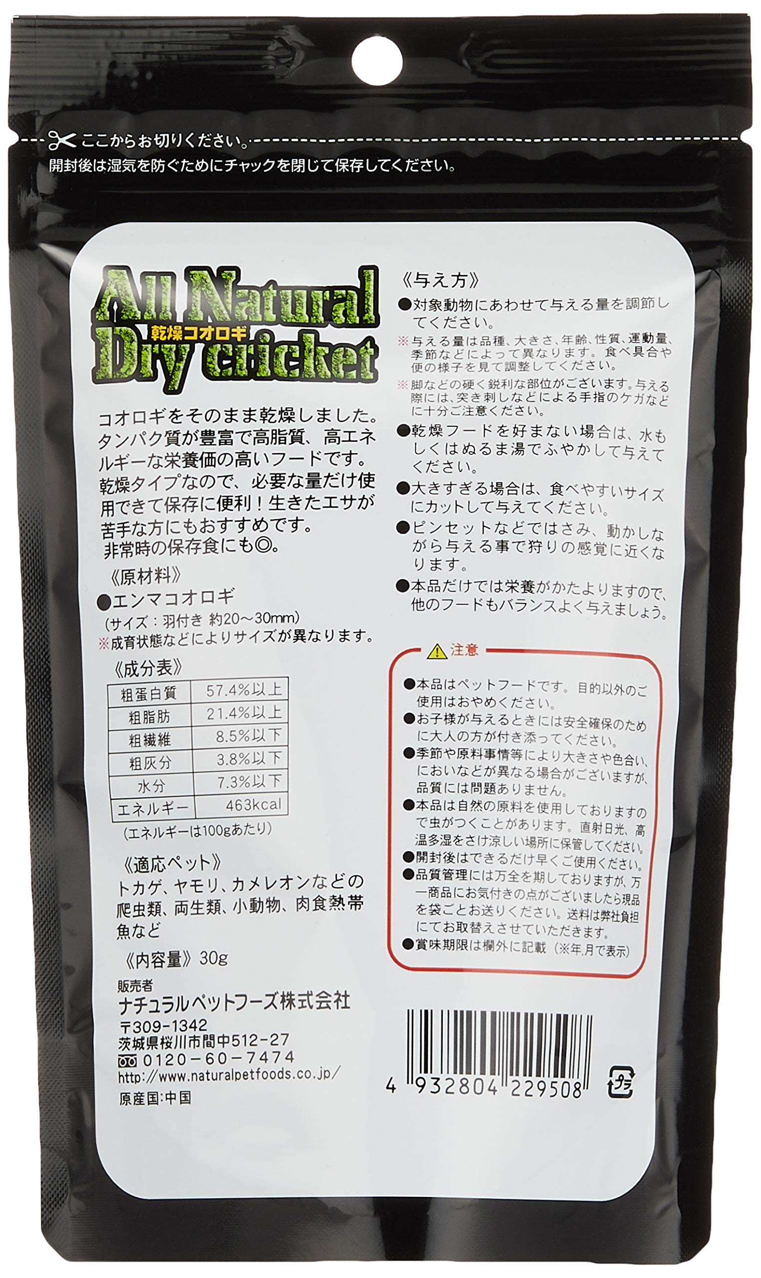 ナチュラルペットフーズ 乾燥コオロギ 30g マルチカラー
