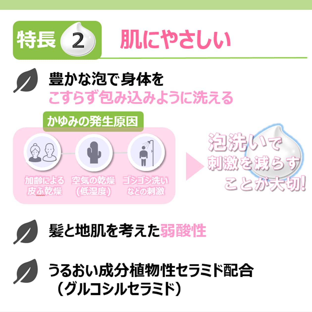 ●うるおい成分植物性セラミド(グルコシルセラミド)配合。髪や地肌を考えた弱酸性。
