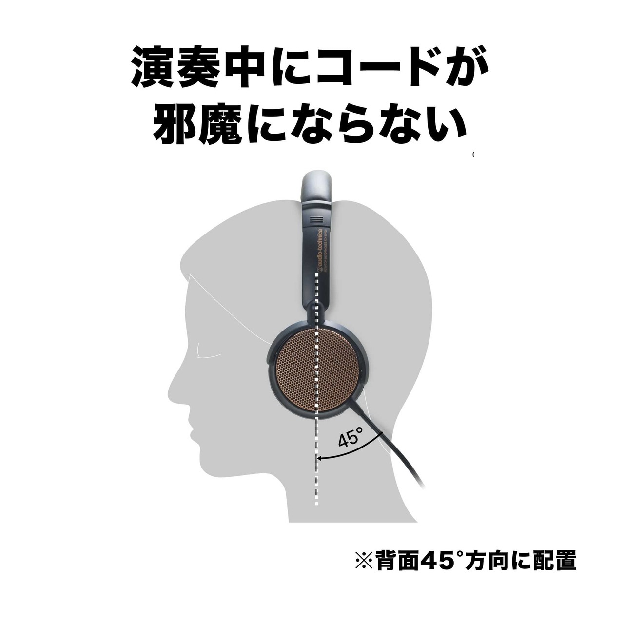 演奏中にコードが邪魔にならないよう、コードを背面45°方向に配置。