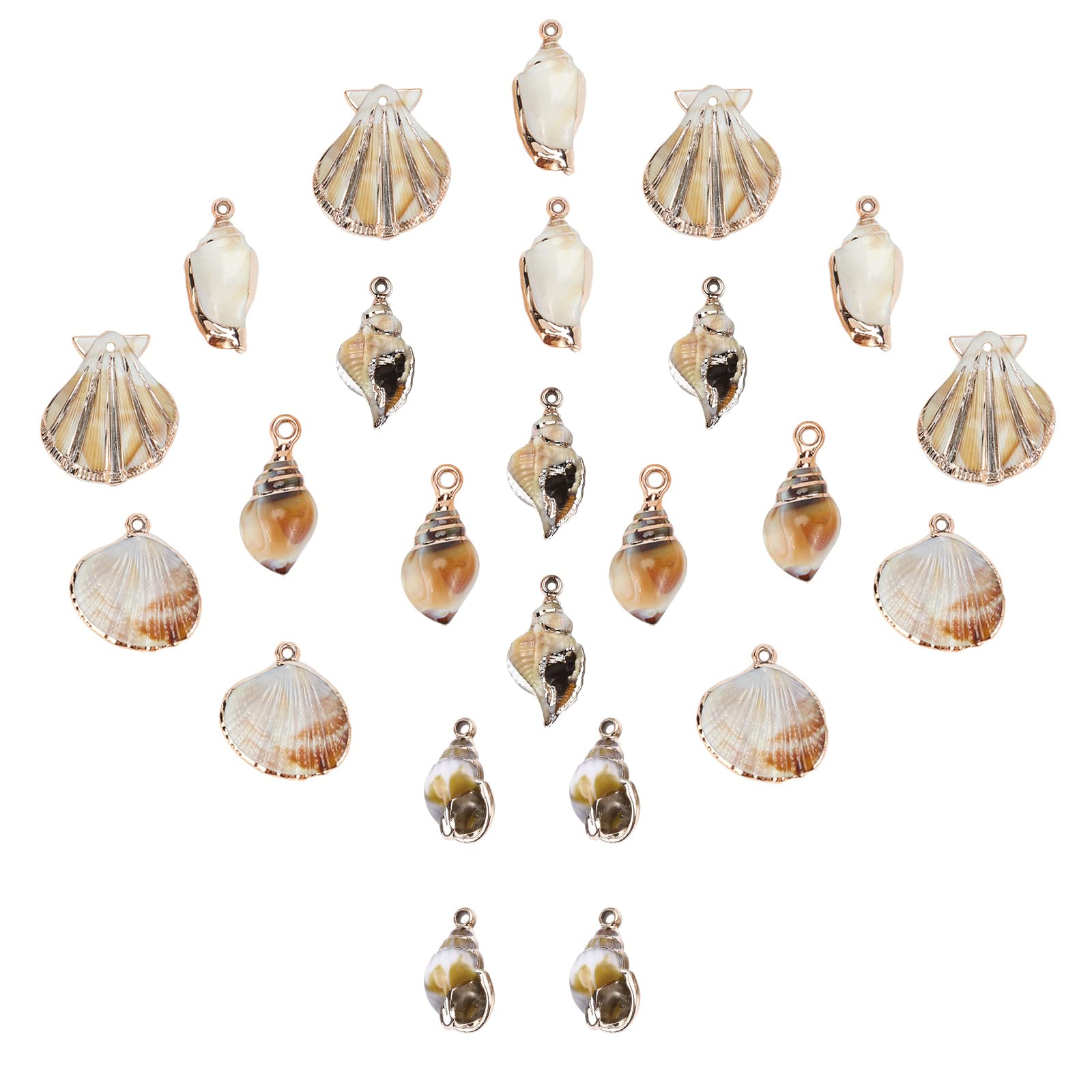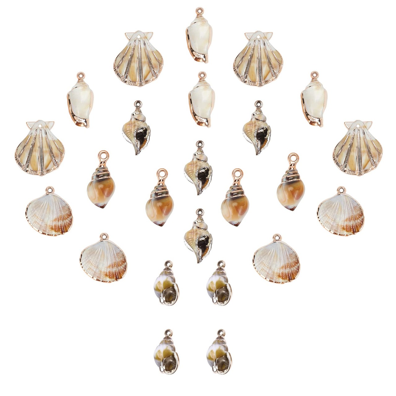 SUNNYCLUE 24個6種 夏 貝殻 チャーム シェル チャーム ビーチ パーツ ペンダント 貝殻 ネックレス オーシャン 鍍金 貝 イヤリング オーシャン つぶ貝 ブレスレット 海洋 てんねん素材 ハワイ ビーチ 貝細工 海 シリーズ 金古美 ハワイアン 接続パーツ 海の生き物 ビーチ小物 夏の日 キーホルダー 海洋生物 チョーカー 海のテーマ アクセサリーパーツ ジュエリー作り レディース デコキット クラフト手芸 手作りキット ジュエリー用 DIY ハンドメイド DIY飾り物