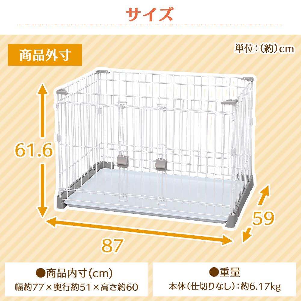 【商品サイズ(幅×奥行×高さ)】:87×59×61.6cm 【内寸サイズ(幅×奥行)】:77×51cn 【入口サイズ(幅×高さ)】:75×46cm 【適応犬種】:小型犬