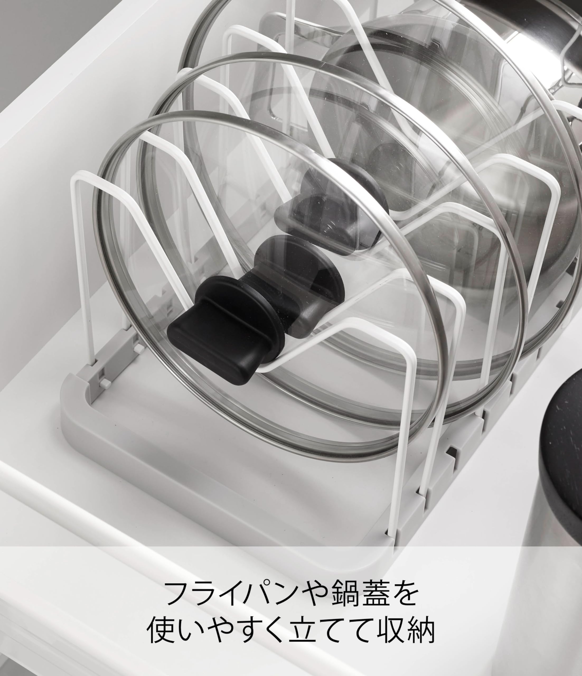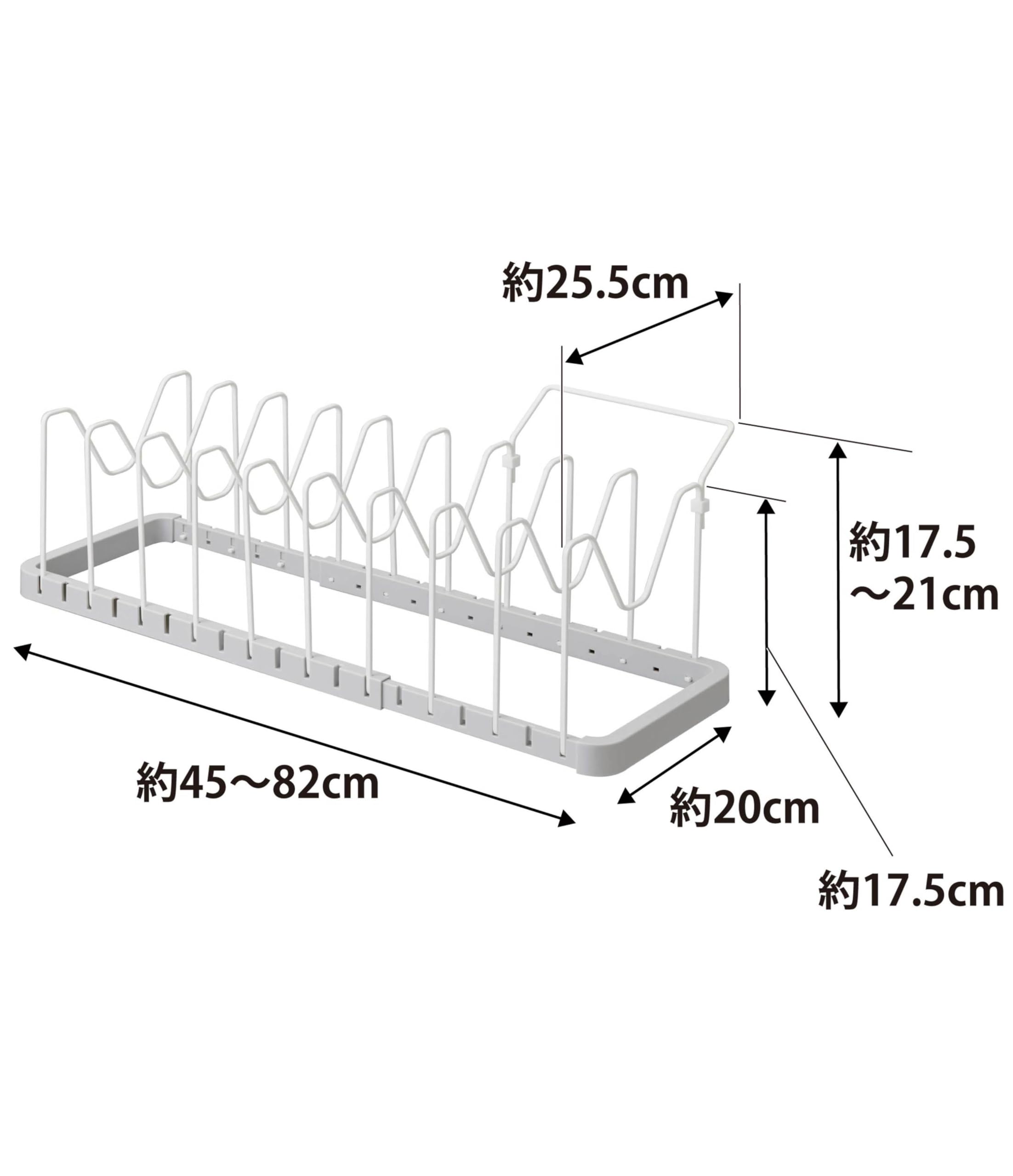 山崎実業(Yamazaki) シンク下 伸縮 鍋蓋 & フライパンスタンド ホワイト 約W45~82×D20×H17.5cm プレート Plate キッチン収納 持ち手置き付 3965